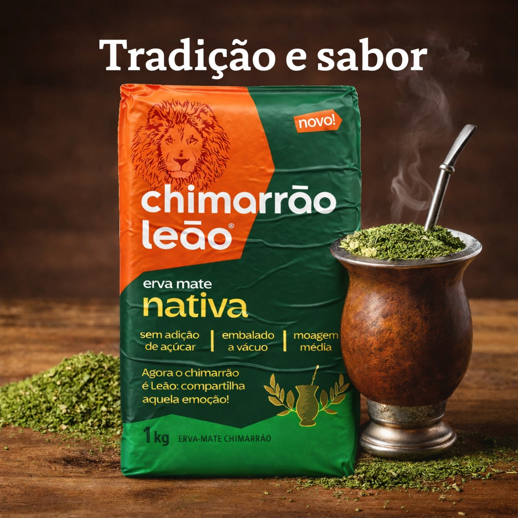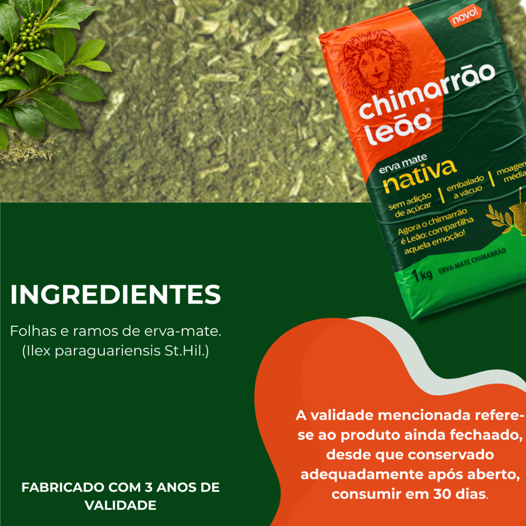 Chimarrão Erva Mate Nativa Leão Embalagem A Vácuo 1 Kg Sem Adição de Açúcar 100% Natural Sem Glúten