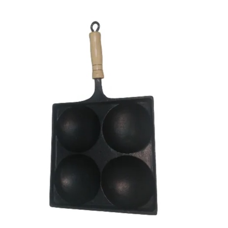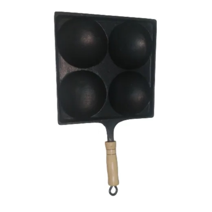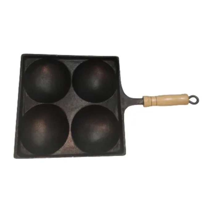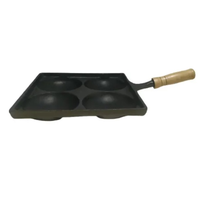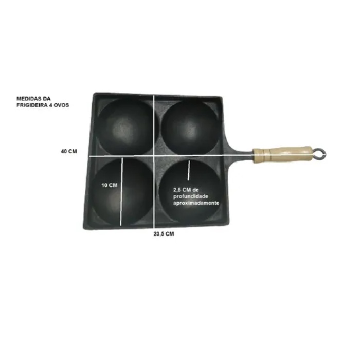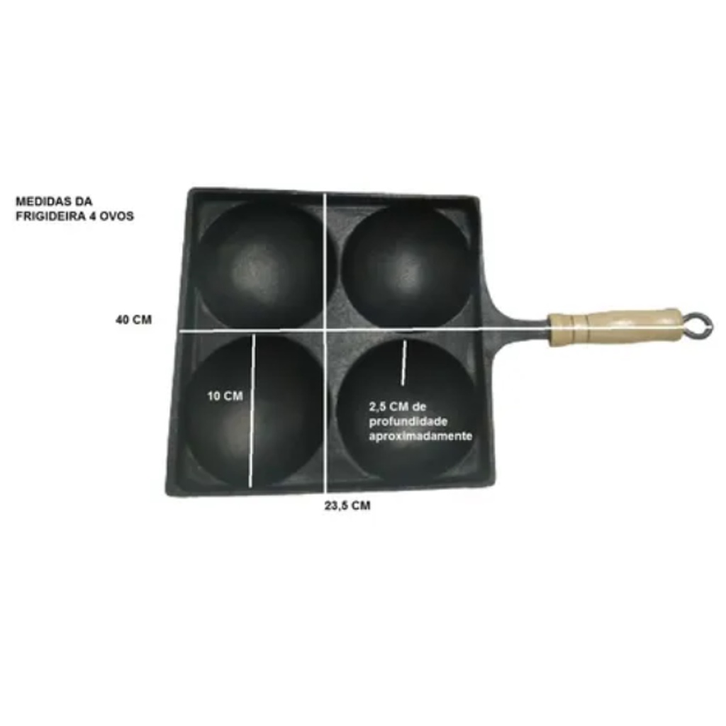 Frigideira 4 Ovos Antiaderente Alumínio Fundido Quadrada Cabo Madeira Frita Ovos Panela