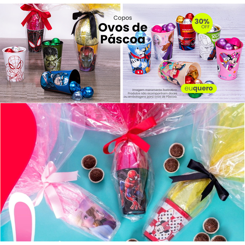 Kit Com 10 Copos Princesas para Meninas p/ Base de Ovo de Páscoa Infantil