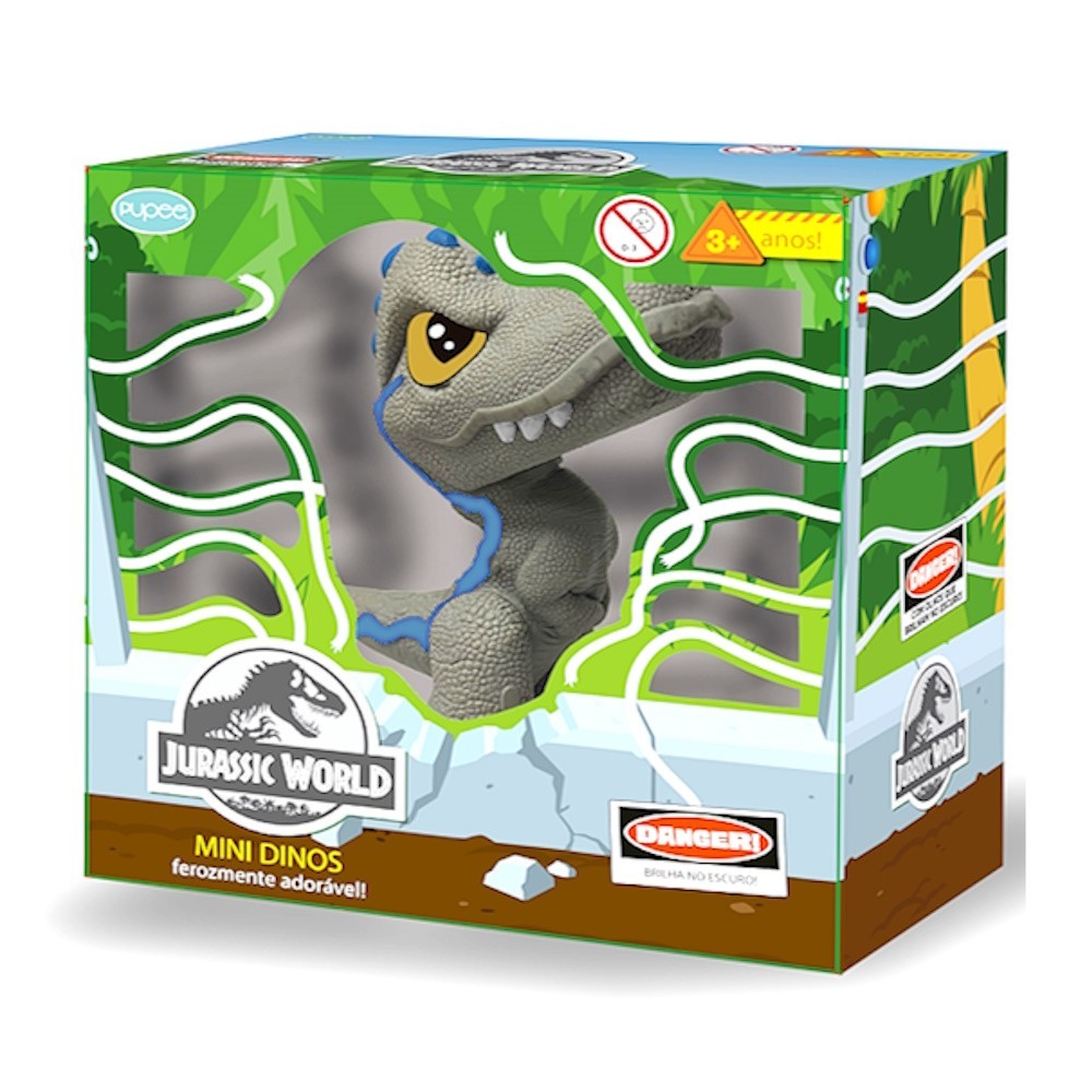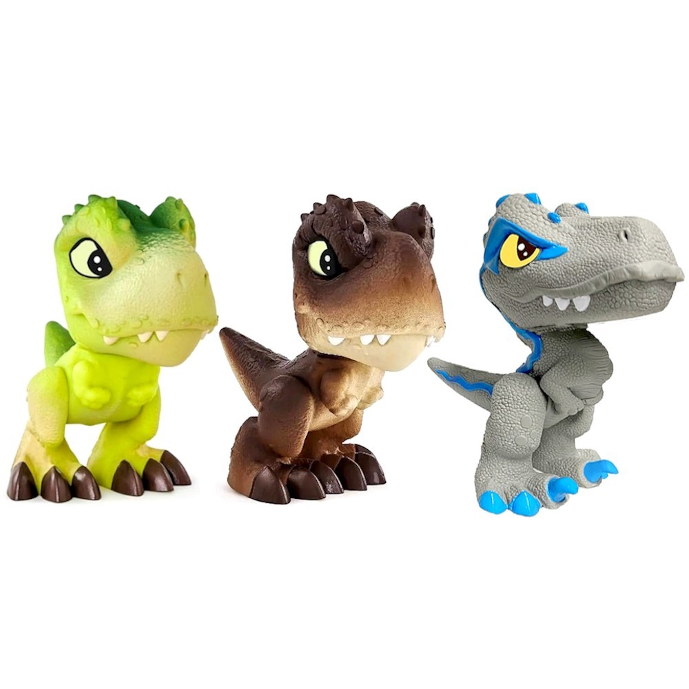 Kit com 3 Dinossauros Tiranossauro Rex Marrom Verde e Velociraptor Blue Jurassic World