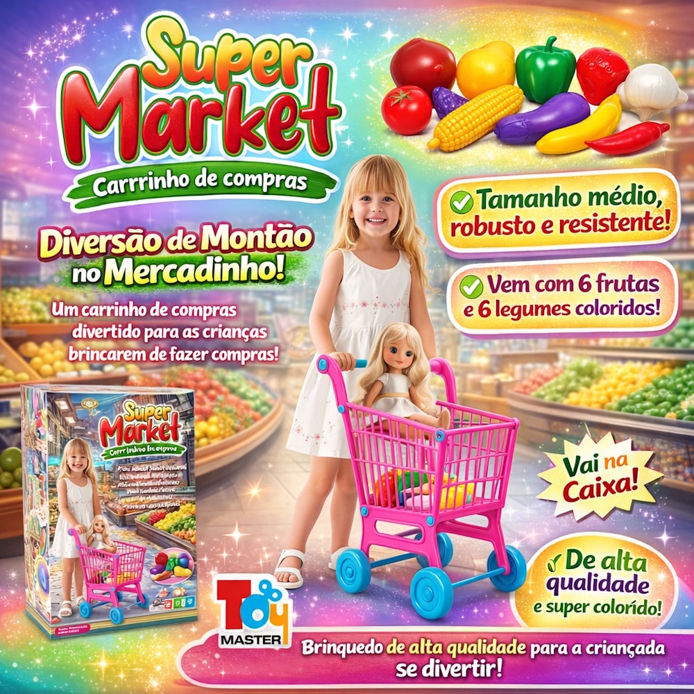 Carrinho de Compras Rosa p/ Super Market + Frutas Legumes