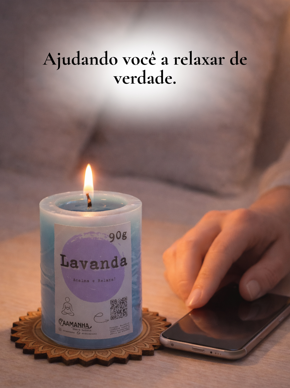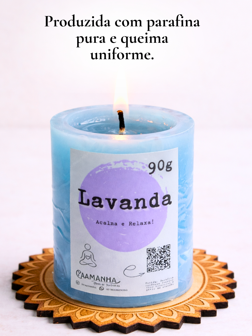 KIt Vela Aromática Lavanda + Porta Vela | Calmante, Alívio do Estresse e Ansiedade | Queima 24 horas | 90g