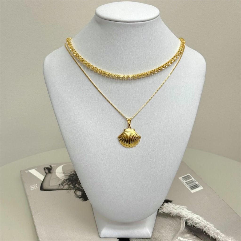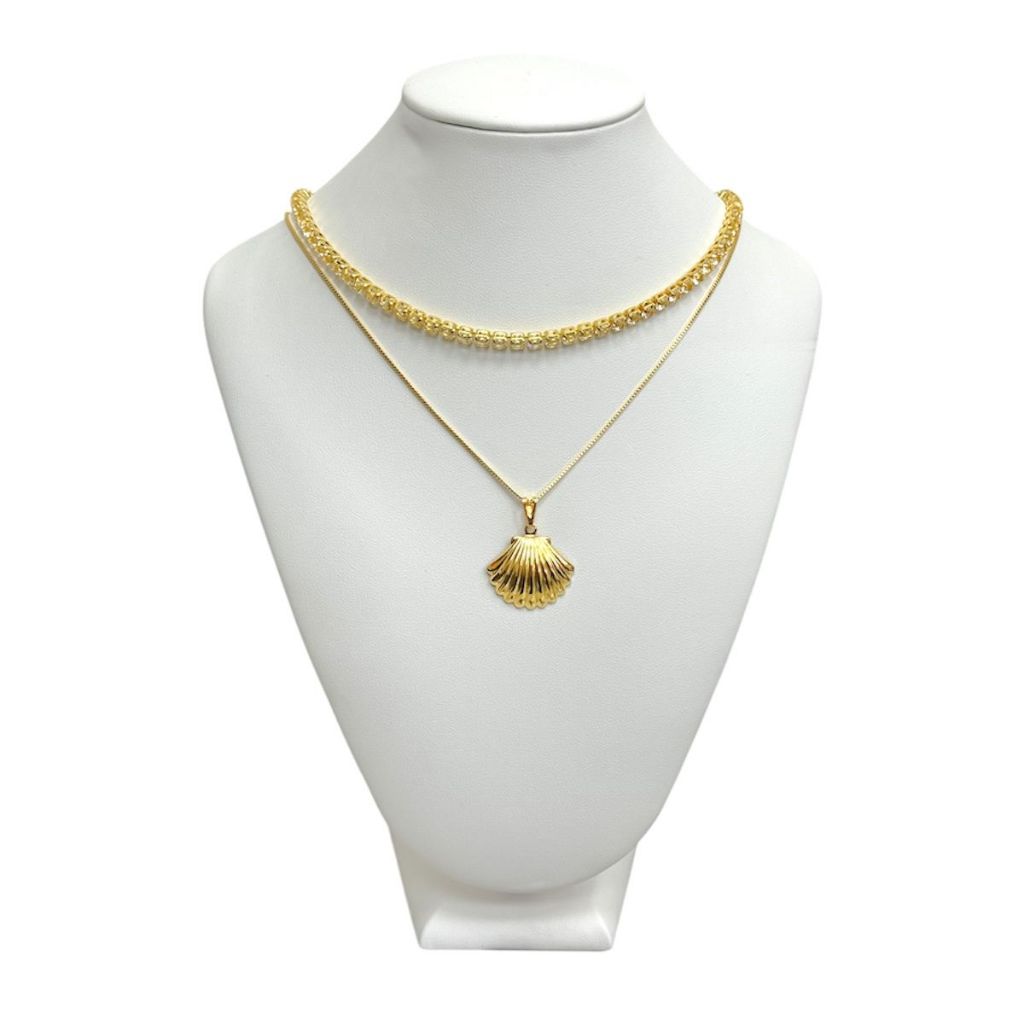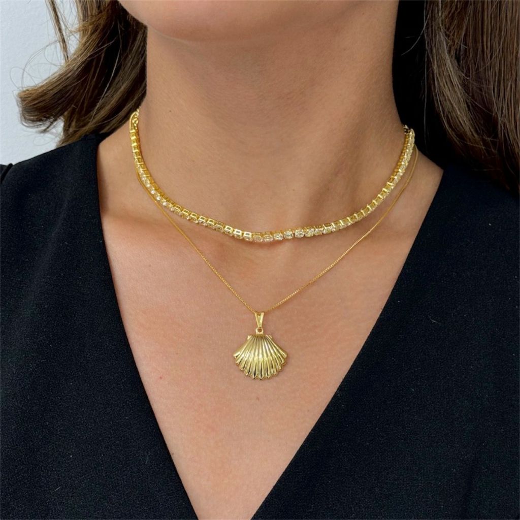 Colar Concha do Mar + Choker Riviera Zirconia Banhado a Ouro 18k