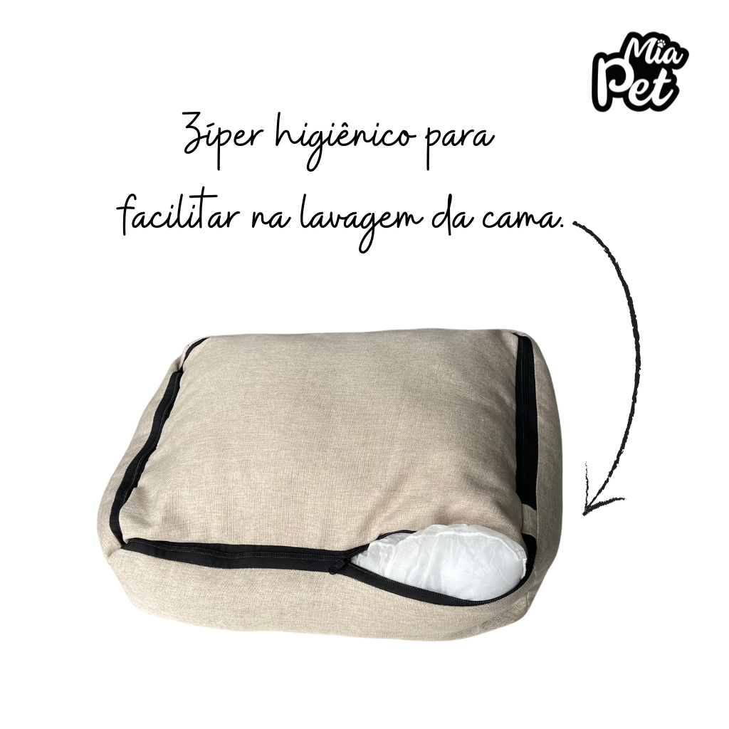 Cama Caminha Pet Cachorro Suede ou Linho Lavável com Enchimento em Fibra