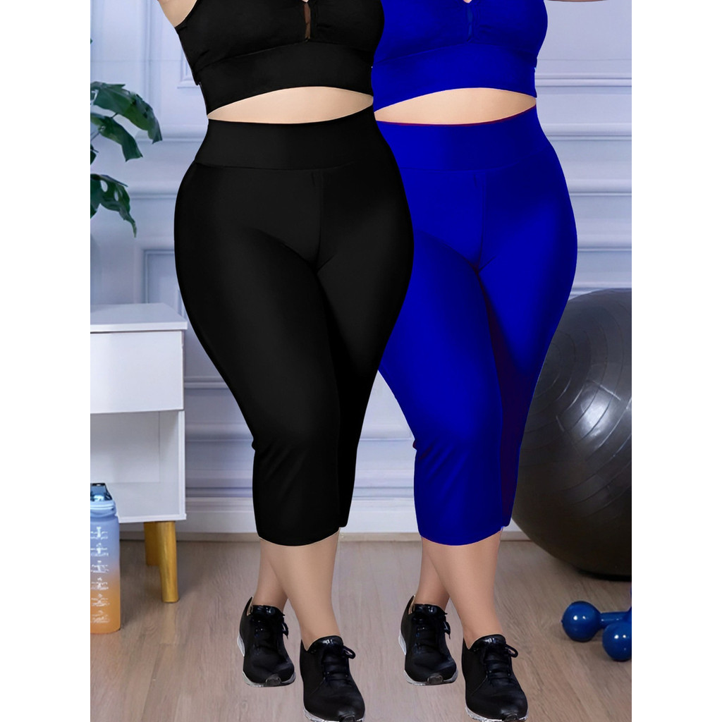 Kit 2 Calça Corsário Suplex Plus Size G1 G2 G3 G4 Fitness Cintura Alta