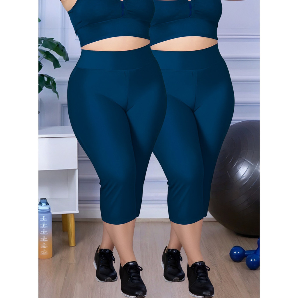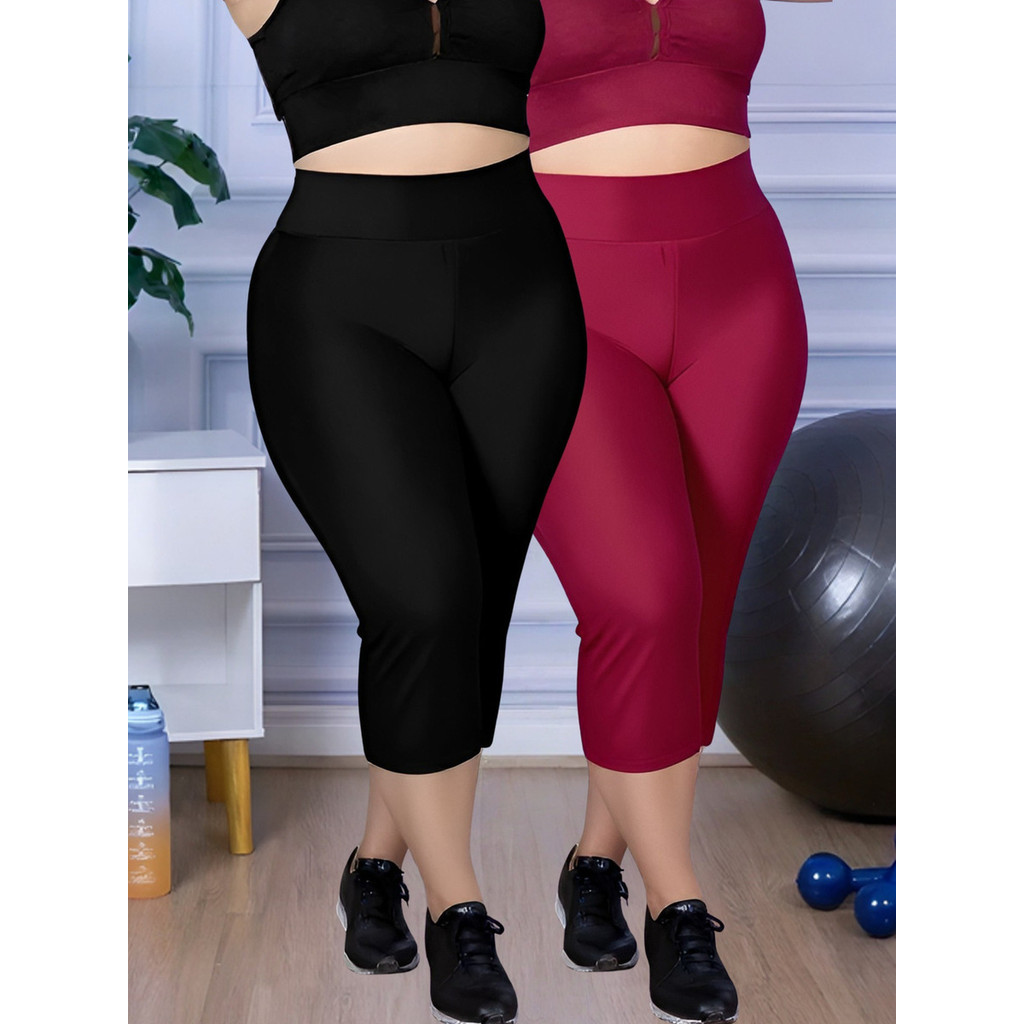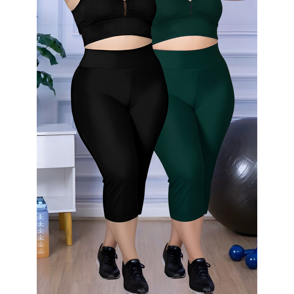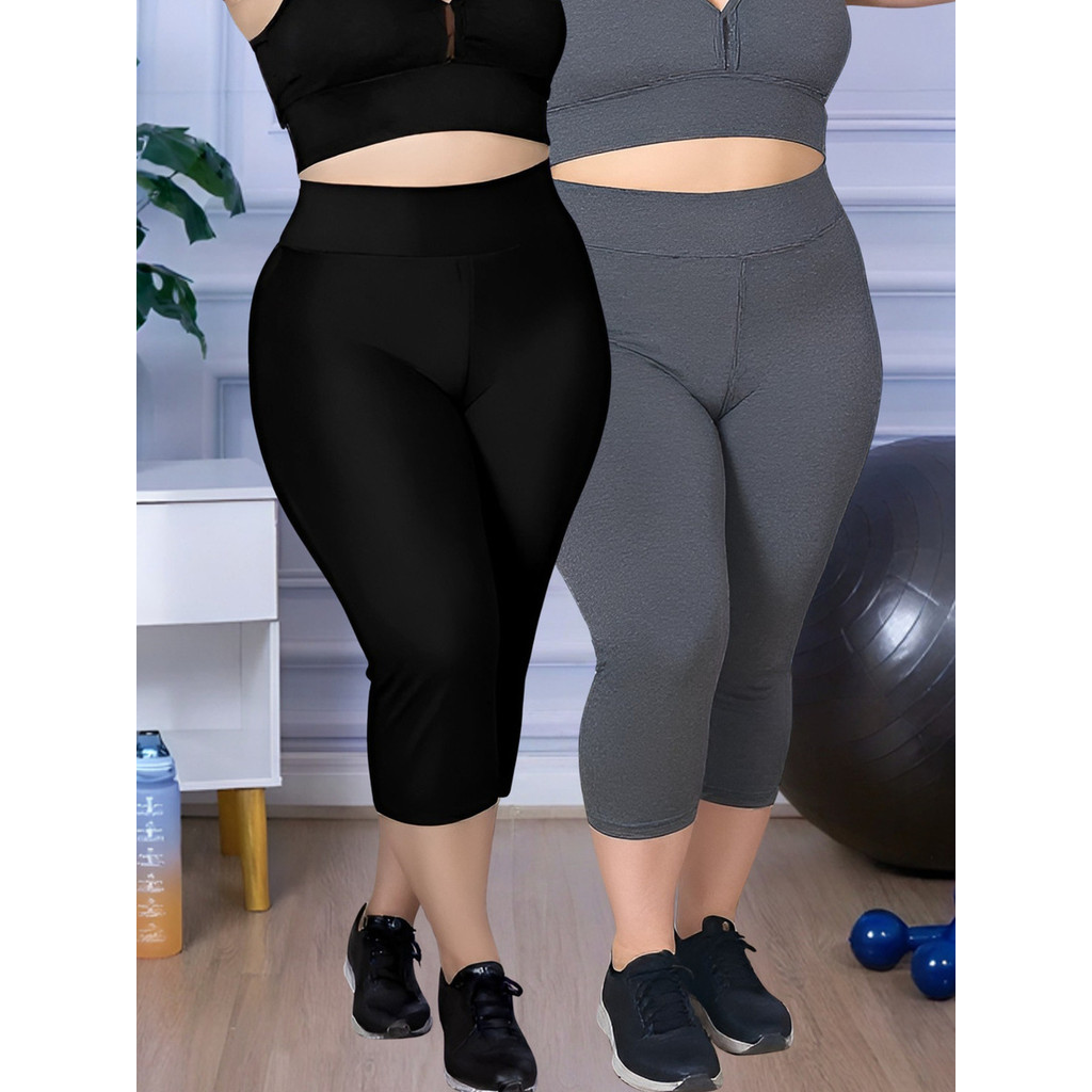 Kit 2 Calça Legging Leg Corsario Capri Plus Size Fitness Suplex