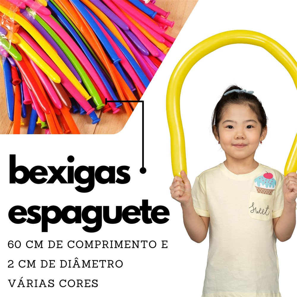 Bexiga Balão Espaguete Canudo 50 Unidades Tamanho 260