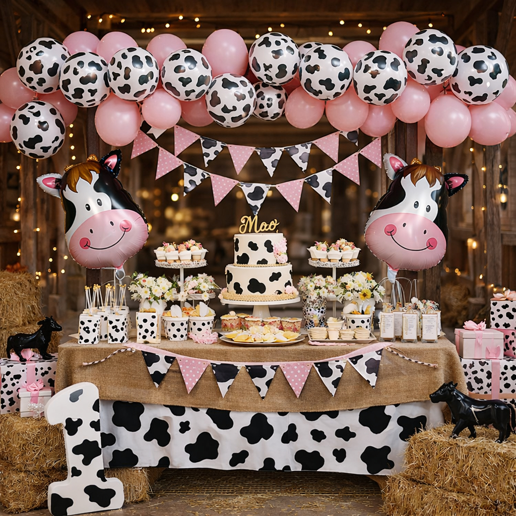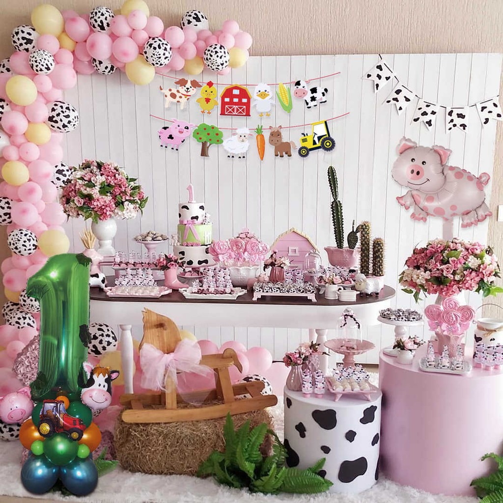 Kit 75 Bexiga Balão Estampa Vaca Vaquinha 9 Polegadas e Rosa Candy 9 Polegadas Festa Aniversário