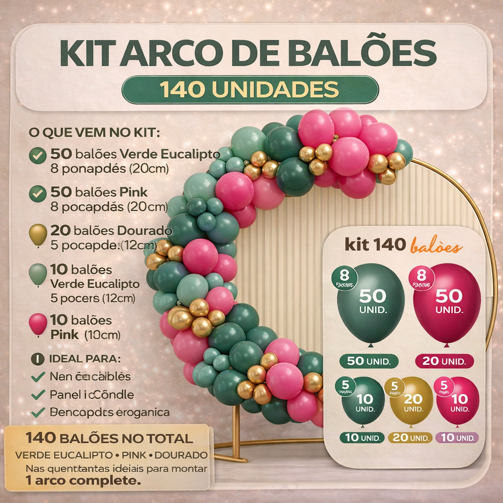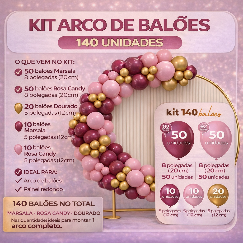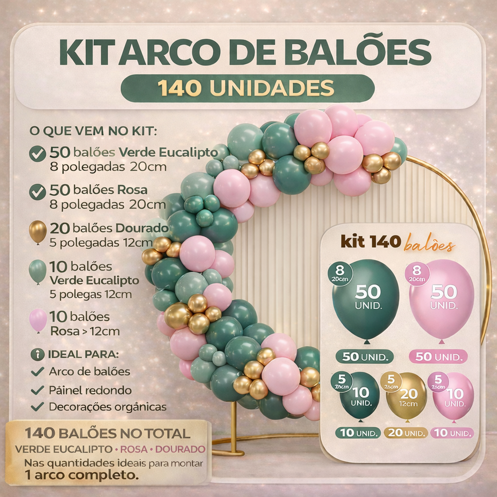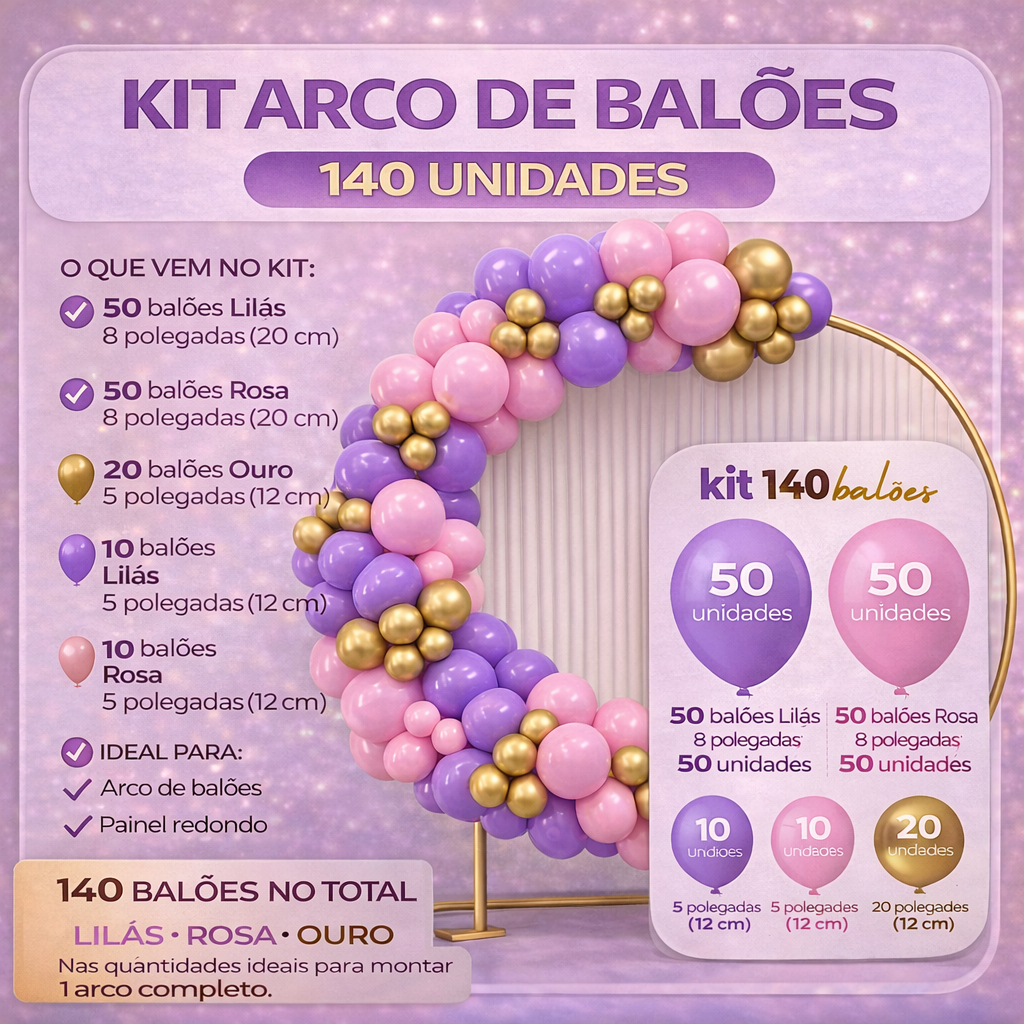 Kit 140 Balões Bexiga Festa Arco Decoração Aniversário