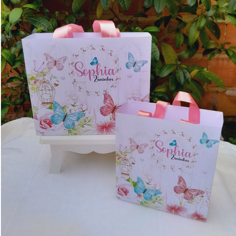 Sacolinha De papel Personalizada Jardim das Borboletas
