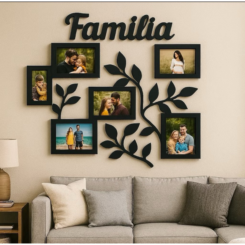 Porta Retrato de Parede Familia Galhos Mural Com 6 Espaços Para Fotos em MDF