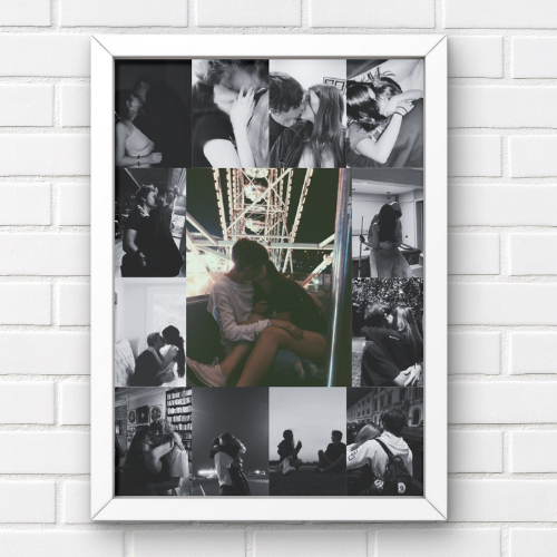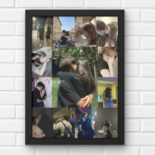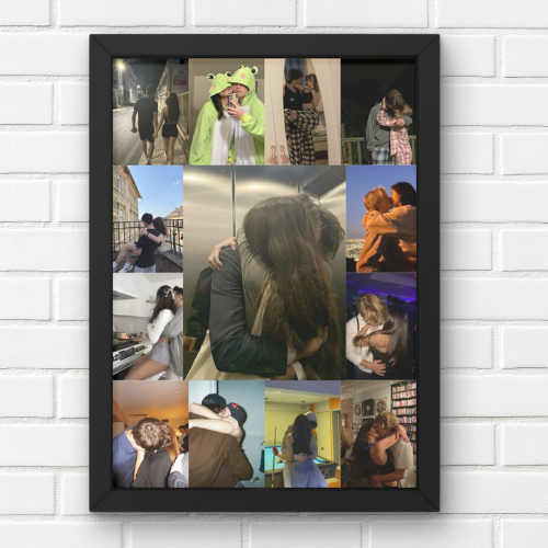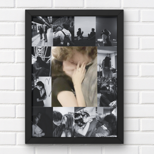 Quadro Personalizado com 13 fotos de Casal para Dia dos Namorados Tamanho A4 Com Moldura e acetato