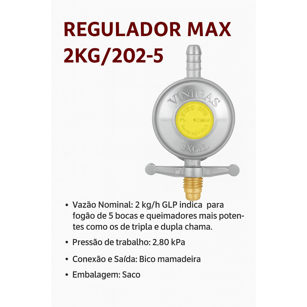 Regulador de Gás Glp Max 2Kg/h para Fogões 5 e 6 Bocas