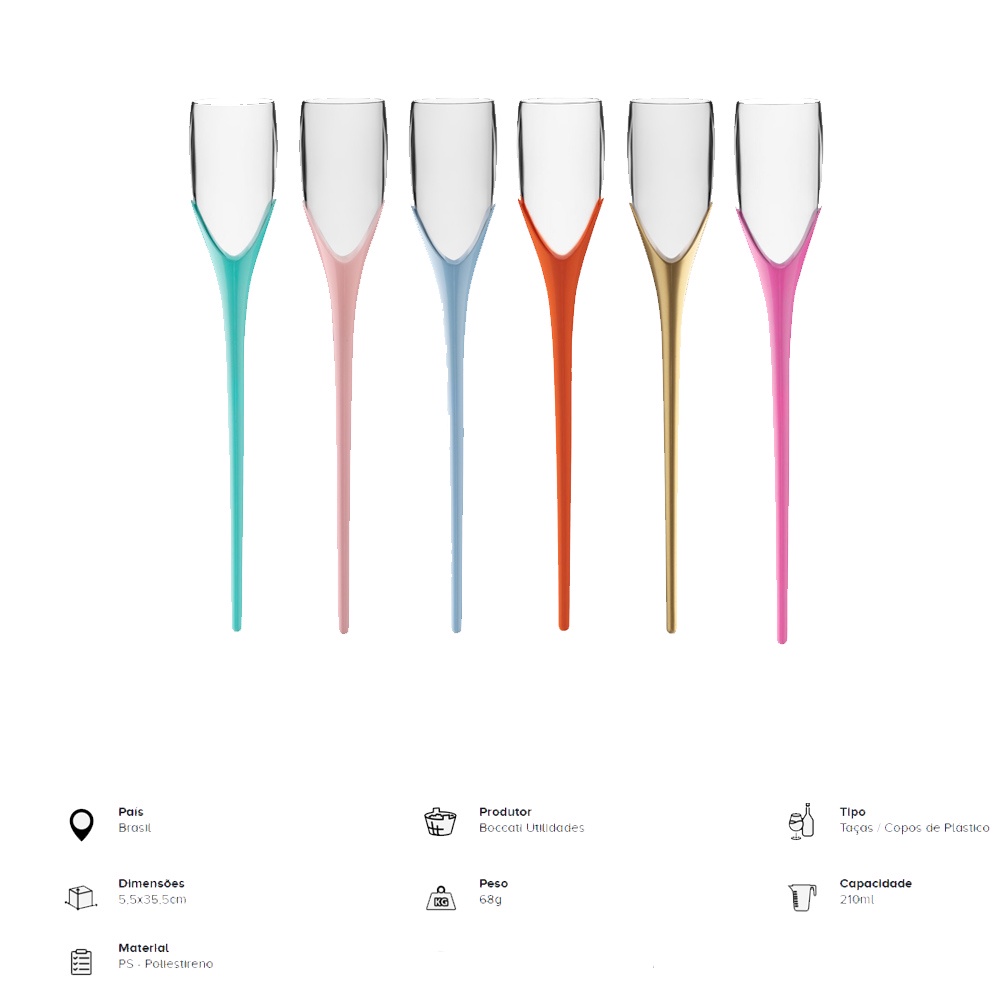Conjunto 6 Taças Fixar Haste Areia Bebidas Praia Champagne