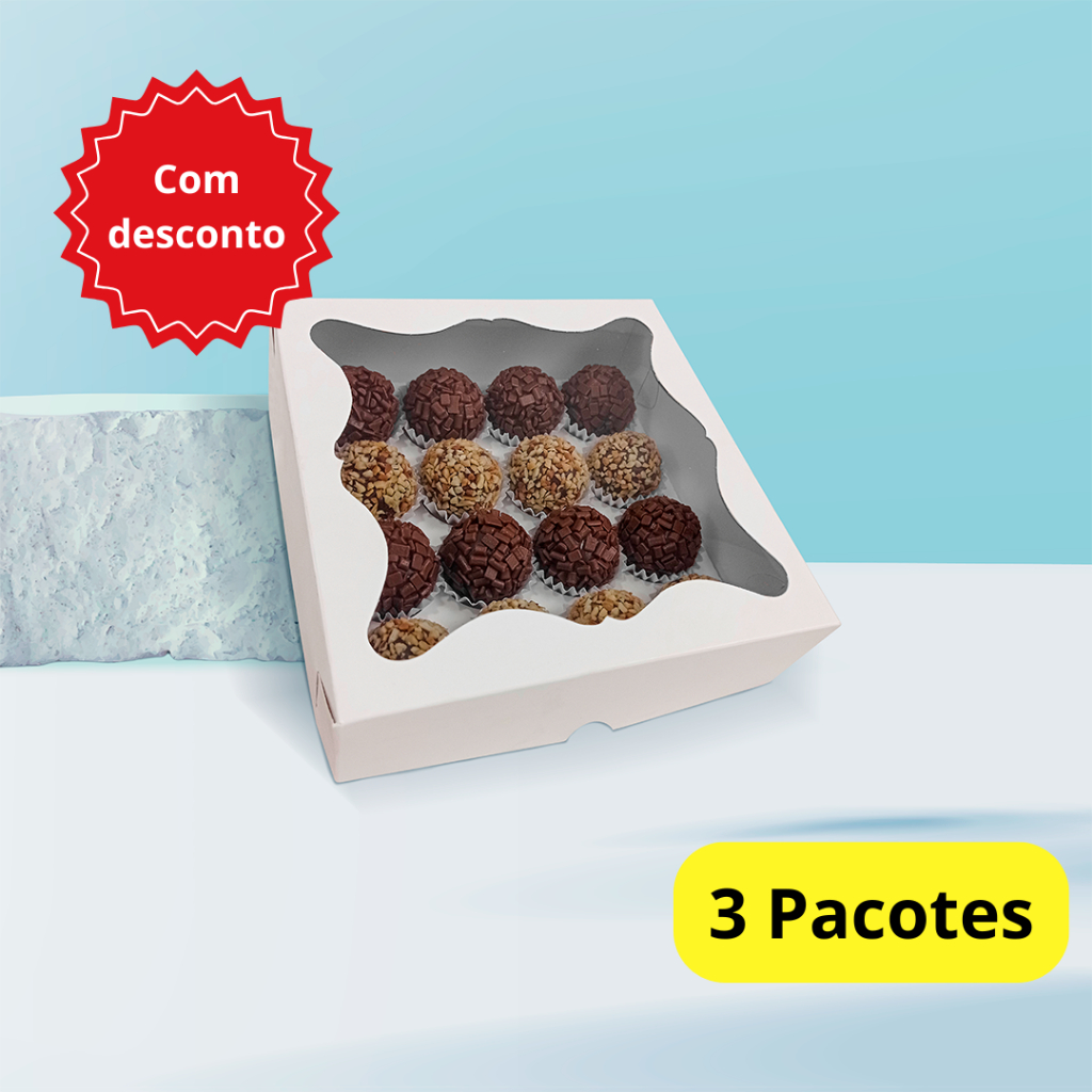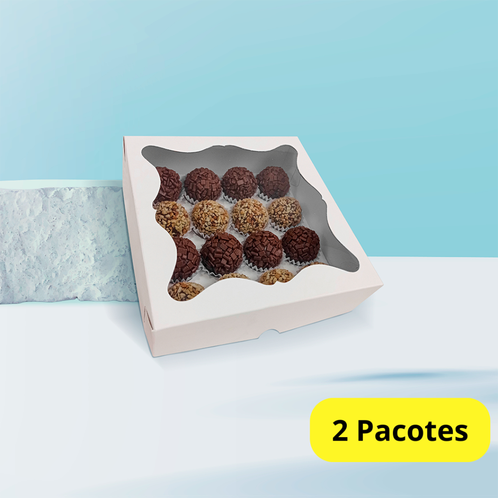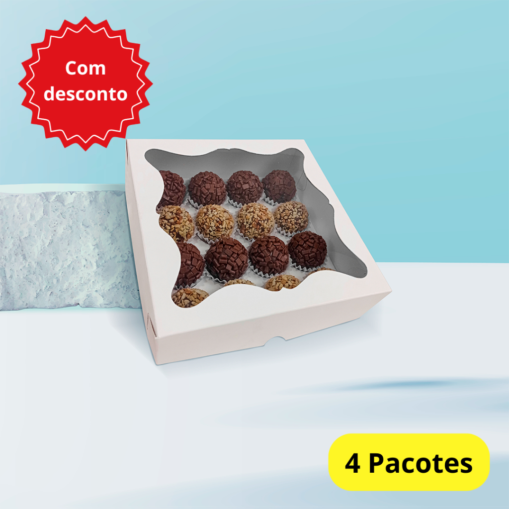 10 Embalagens Caixas para 16 Doces, Brigadeiros e Bombons - Com Visor - Branca