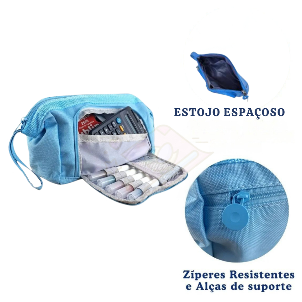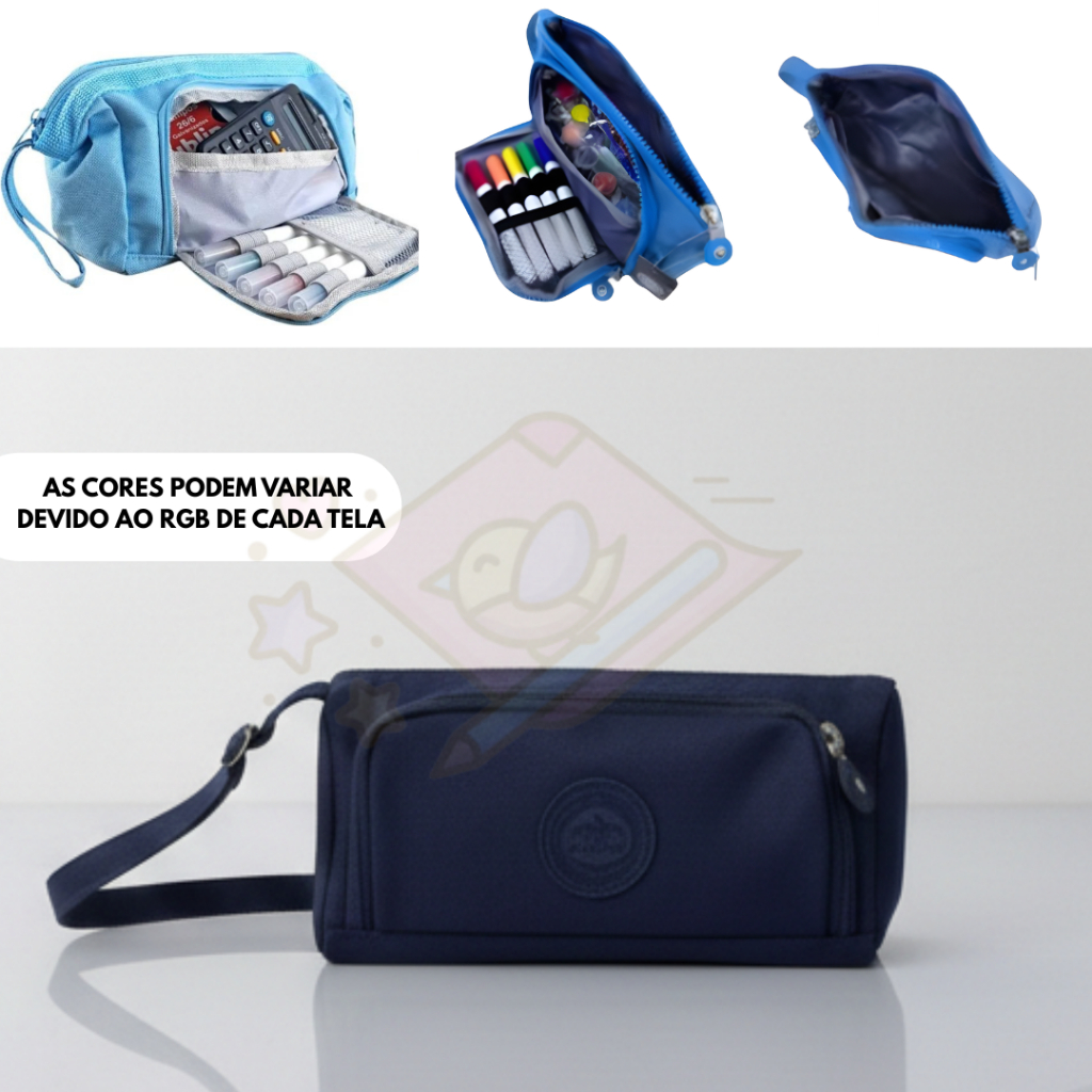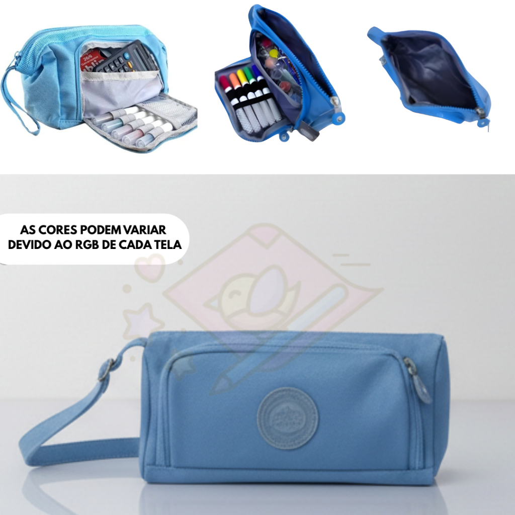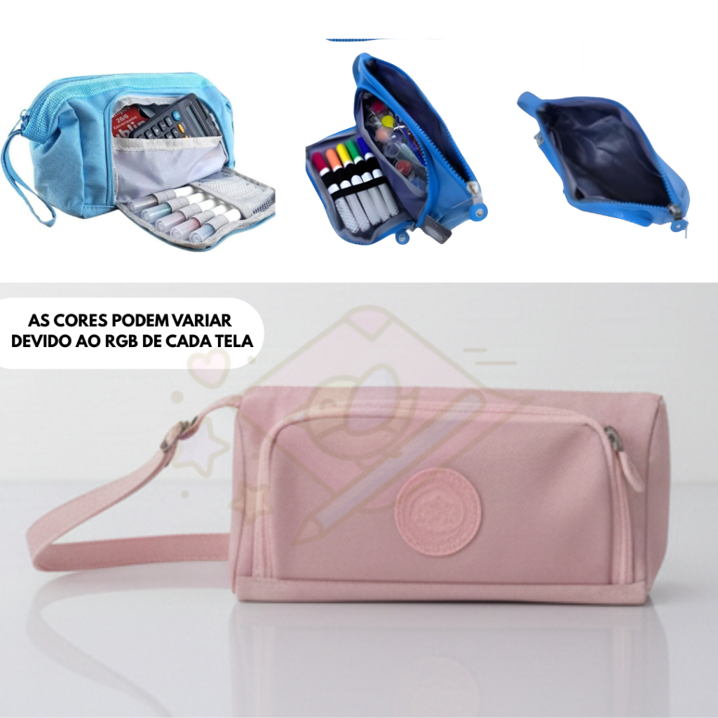 Estojo Escolar Case Com 2 Divisória e Alça Organizador Porta Lápis Caneta Material Escolar Volta às Aulas