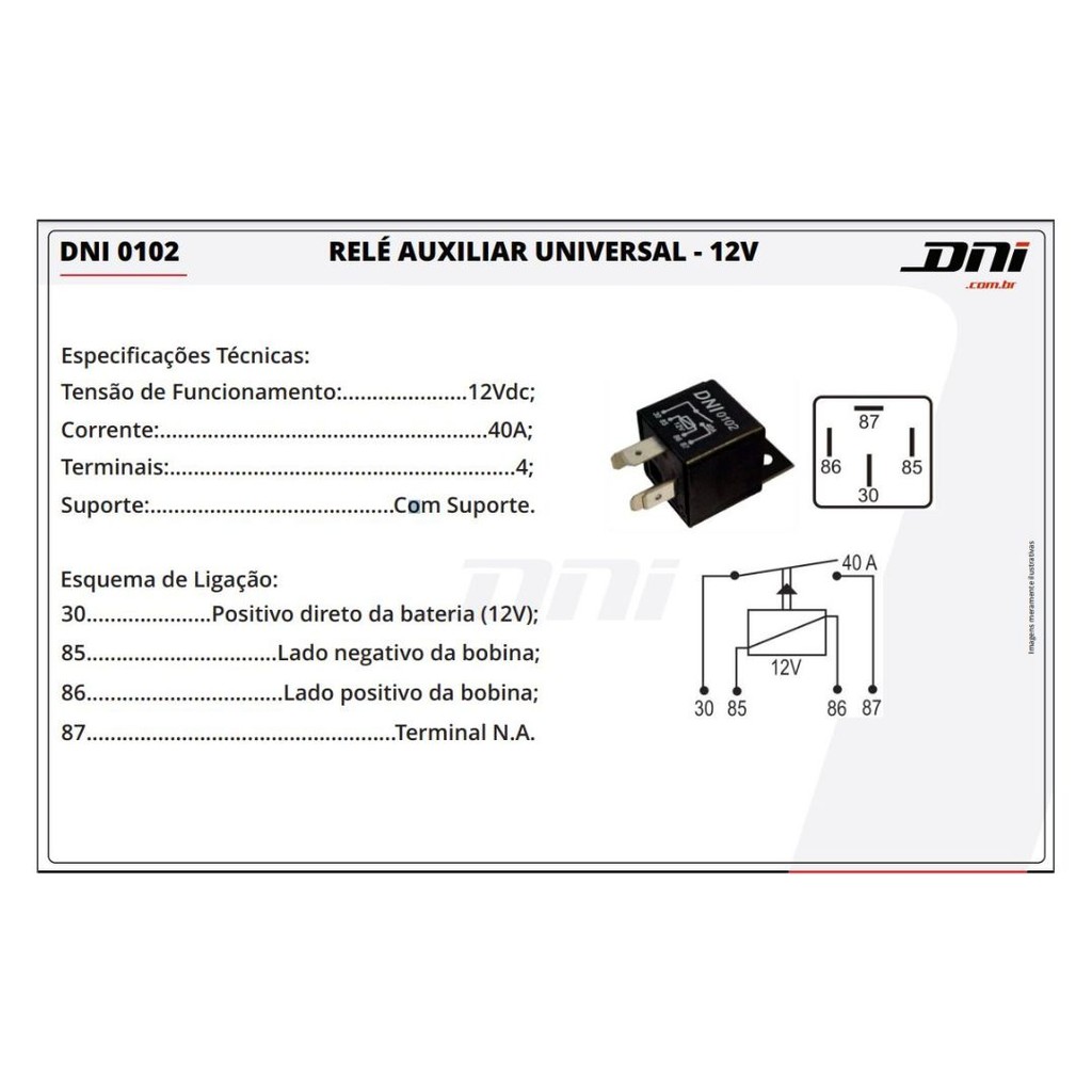 Rele Auxiliar 4 Terminais C/ Suporte 12v 40a Universal