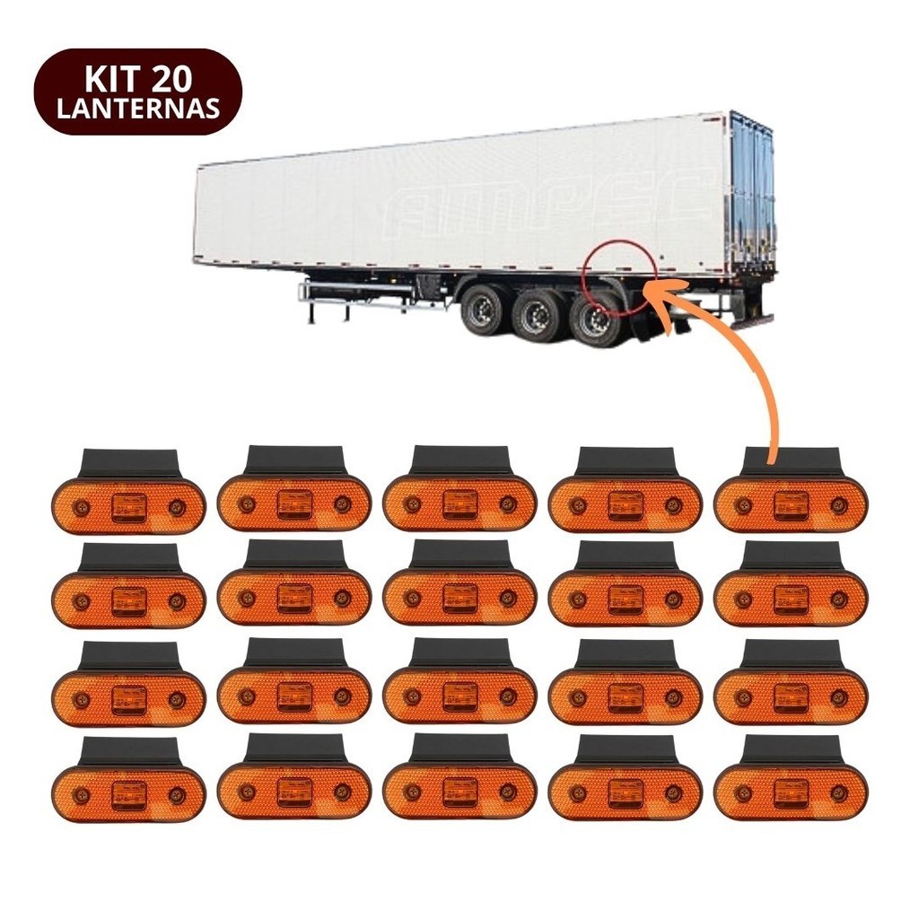 Kit 20 Lanterna Lateral LED Para Carreta Facchini Caminhão Trailer Reboque Com Suporte Amarela