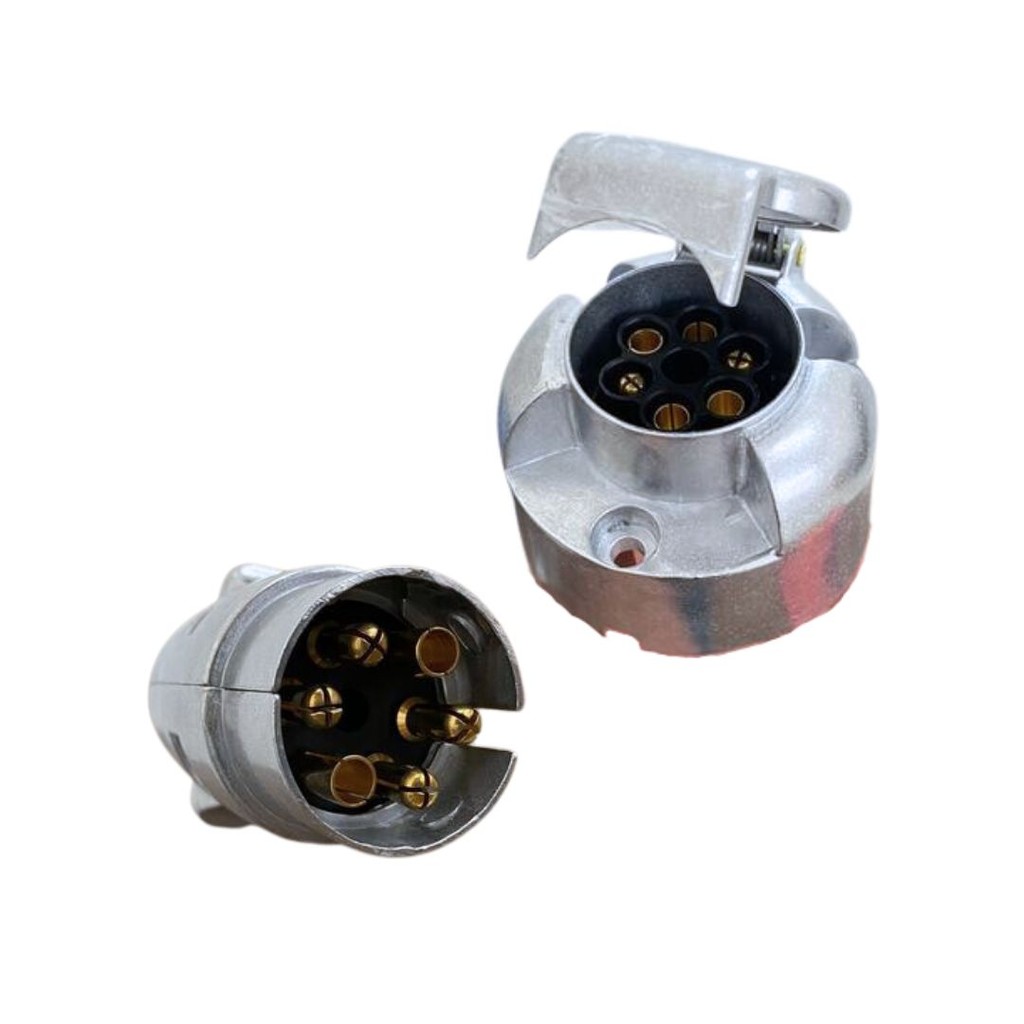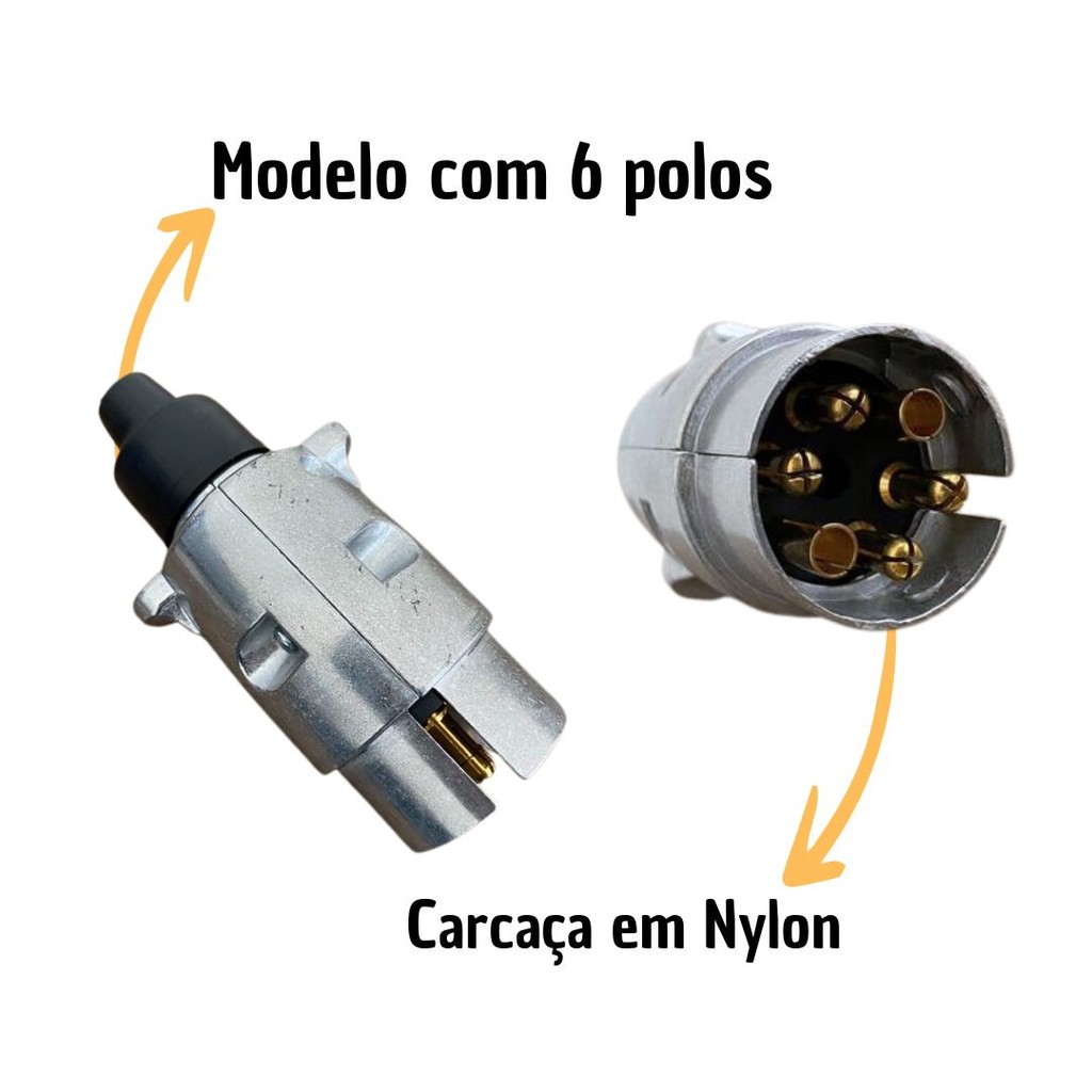 Kit Tomada Macho Femea Reboque Carretinha Plug Engate Alumínio 6 Pinos/ Polos