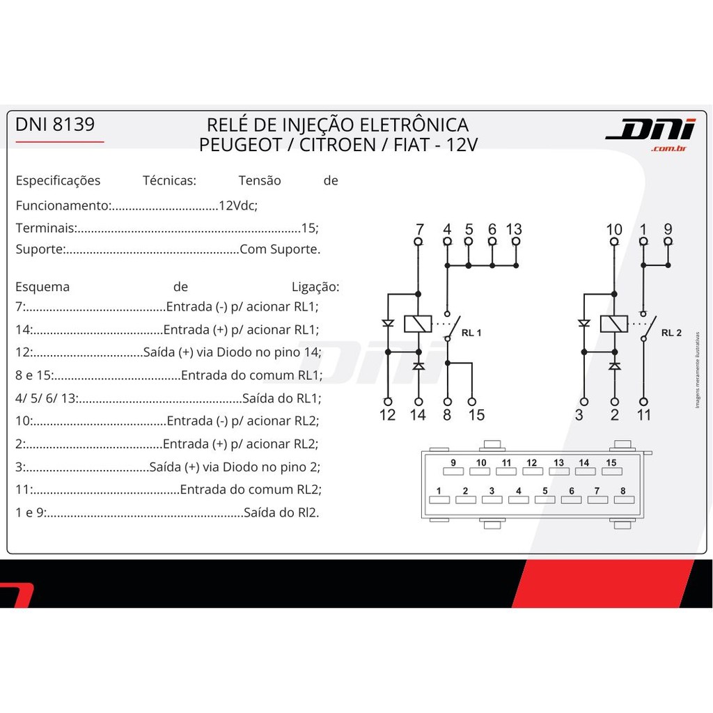 Relé Injeção Eletrônica Para Citroen Peugeot Fiat 12v 15 Terminais DNI8139 9619696580