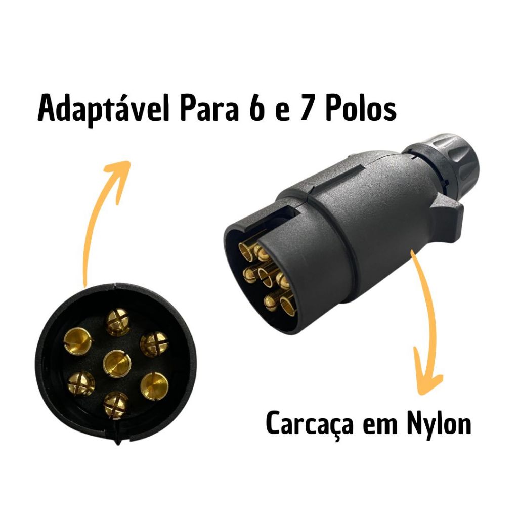 Tomada Plug Elétrica Reboque Carretinha Engate Redonda 6 Polos Macho 12V/24V Tomada Carretinha