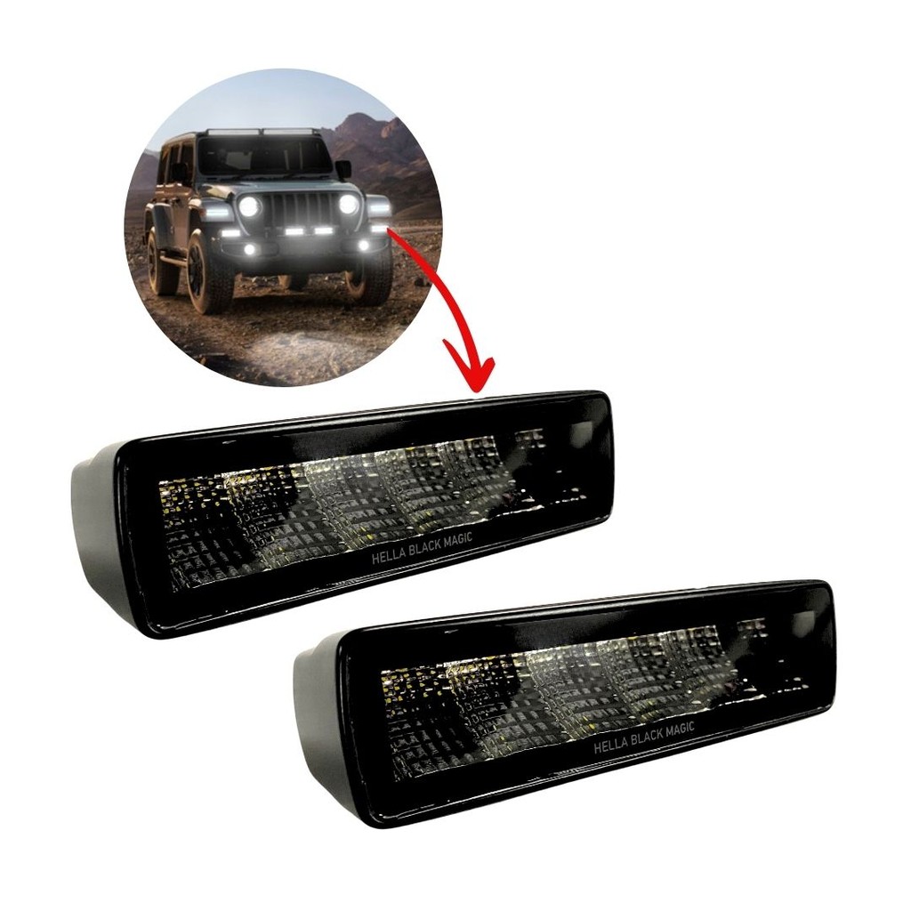 Par Barra Led Farol Neblina Auxiliar Black Magic Flood Hella