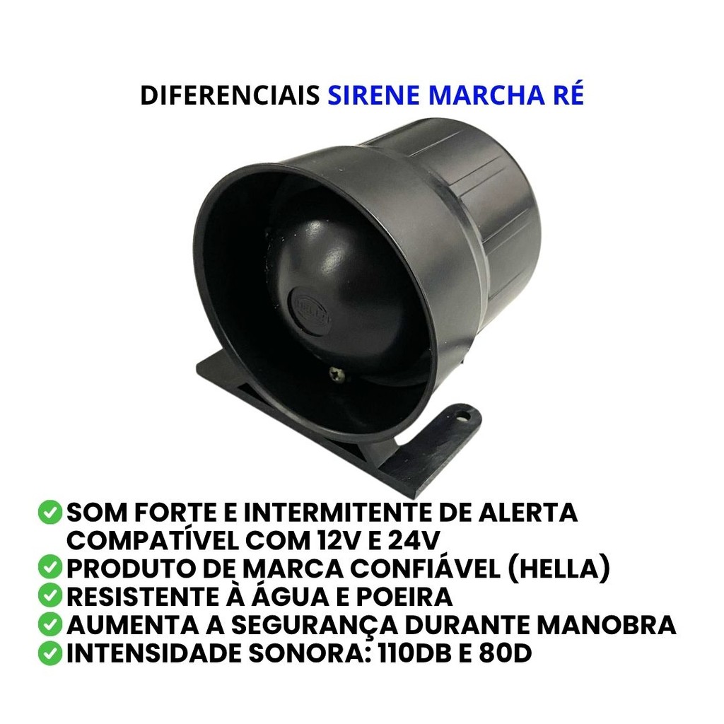 Sirene Intermitente Marcha Ré 12v/24v 110dB Alta Potencia