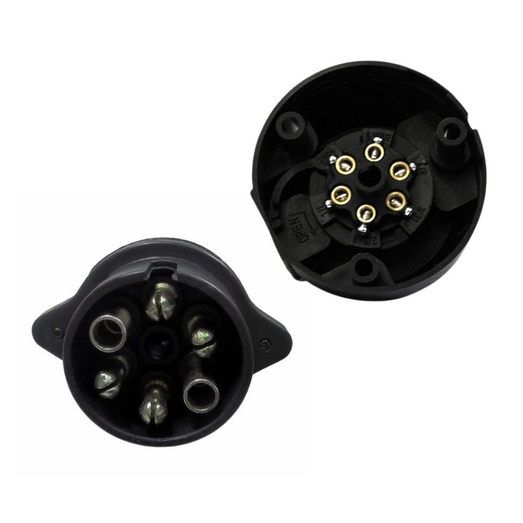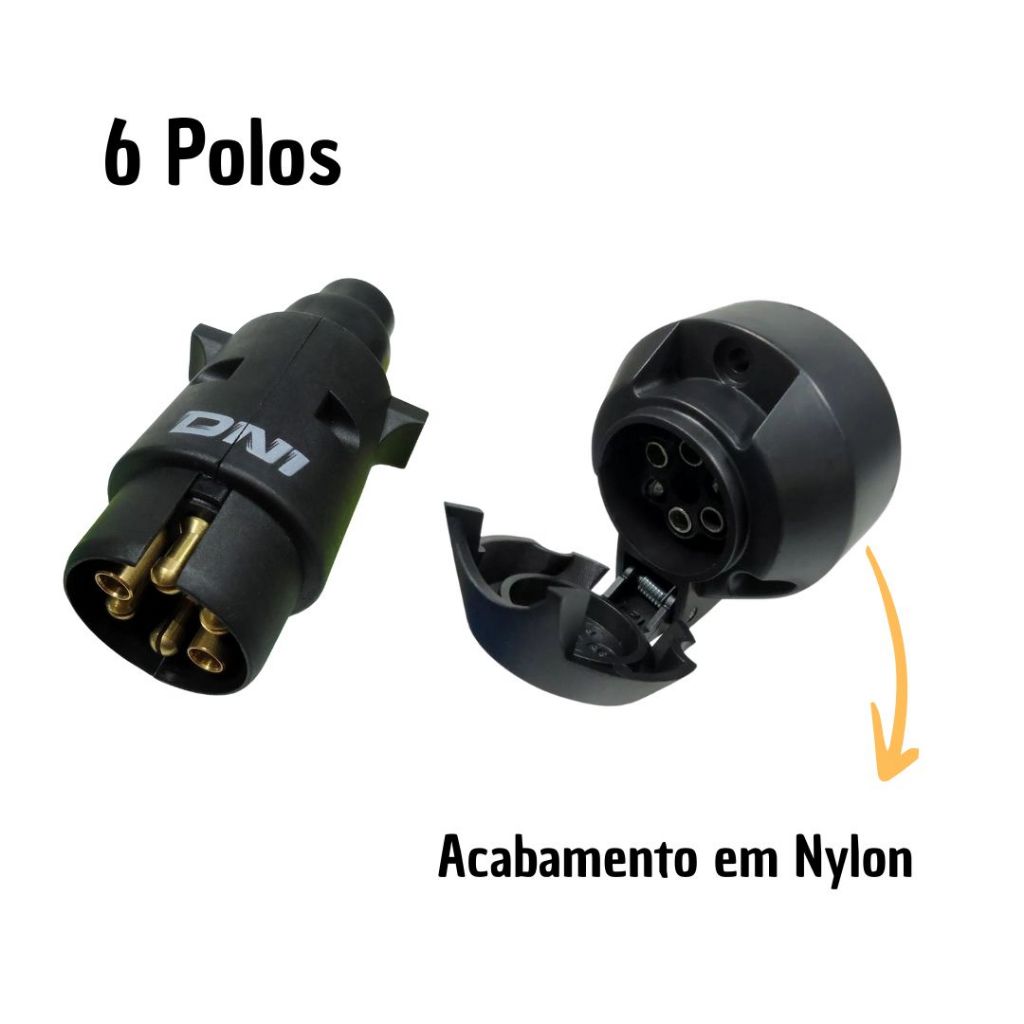 Kit Tomada Elétrica Carretinha Caminhão Reboque Conector Fêmea Macho 6 Polos 12v/24v Nylon DNI