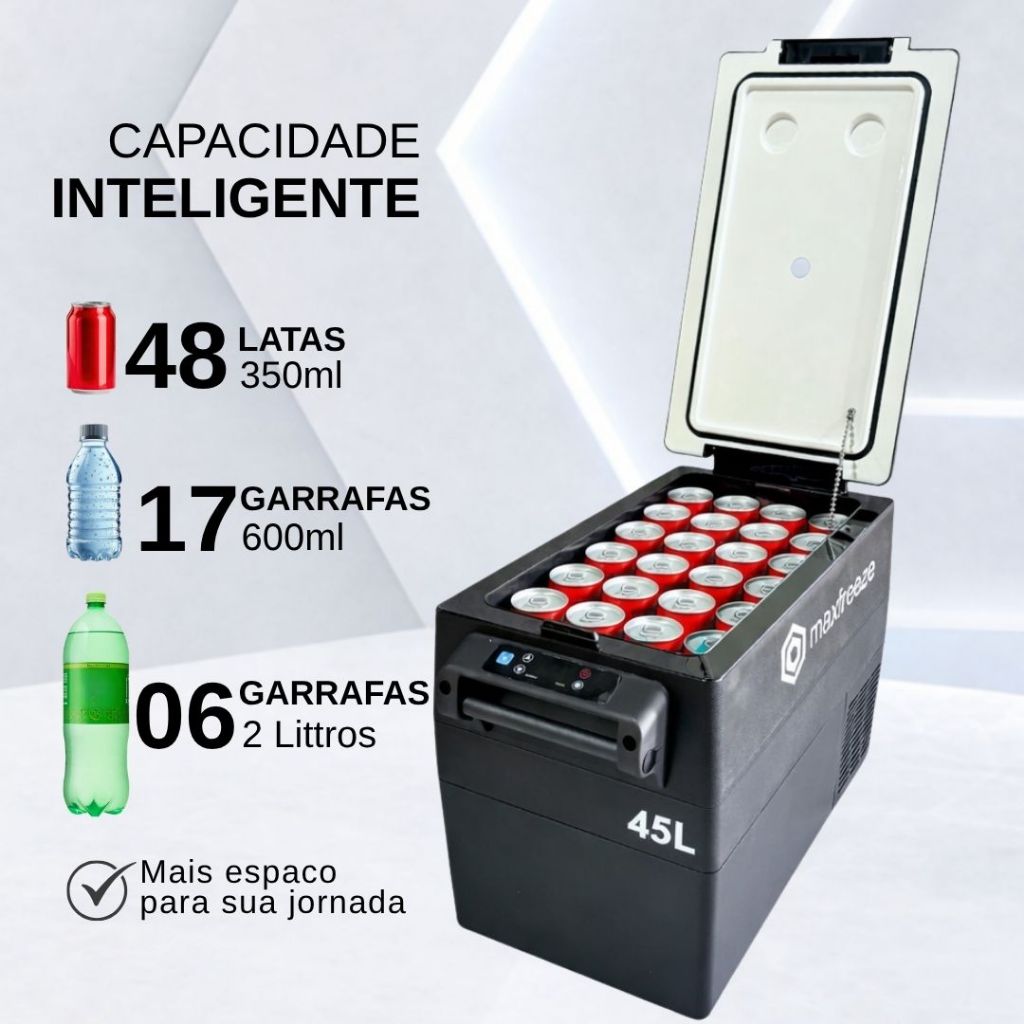 Mini Geladeira Portátil 45 Litros 12v/24v 110v/220v Caminhão Ônibus Van Pesca Barco Camping
