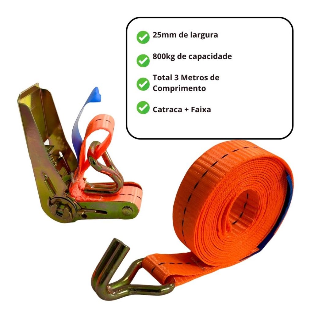 Kit 2 Cinta Catraca Amarração 800kg Carretinha Moto JetSki Cinta Catraca 3 Metros