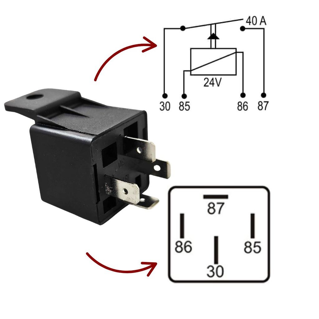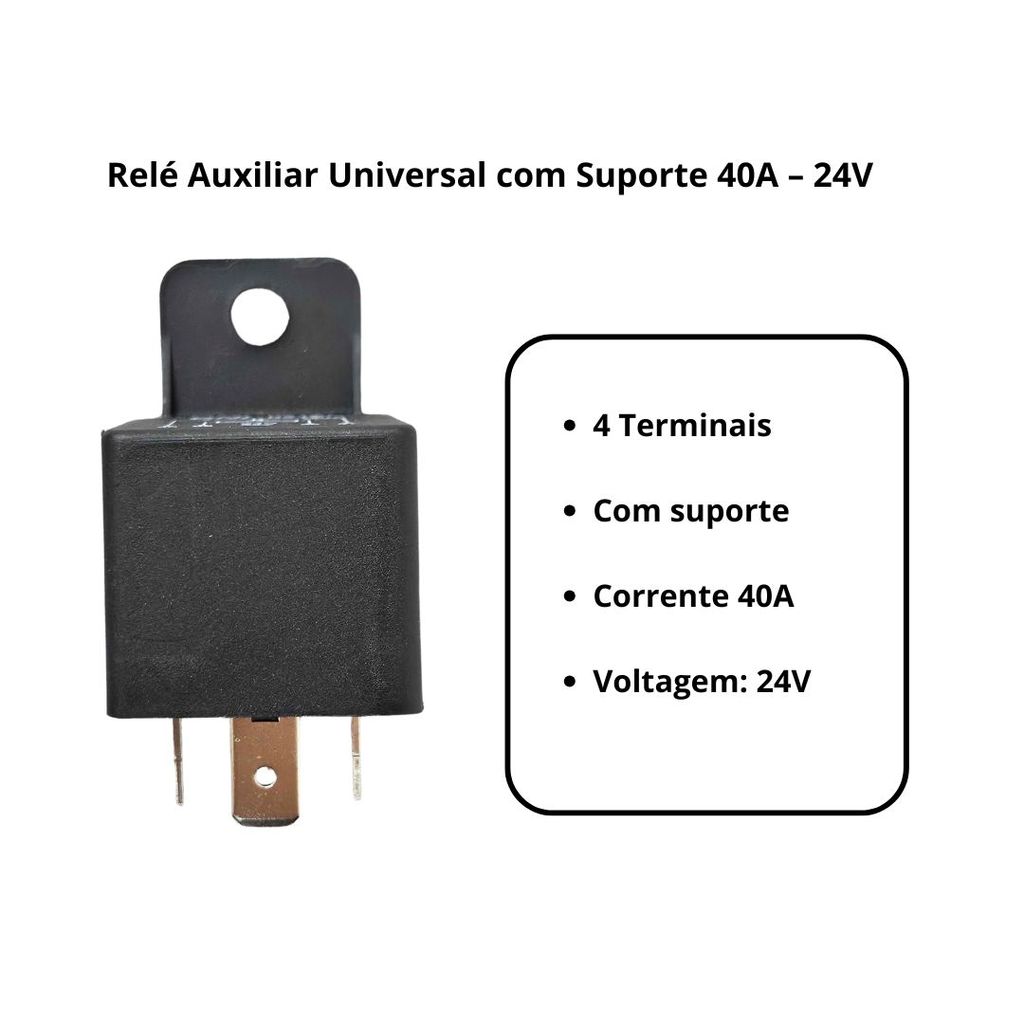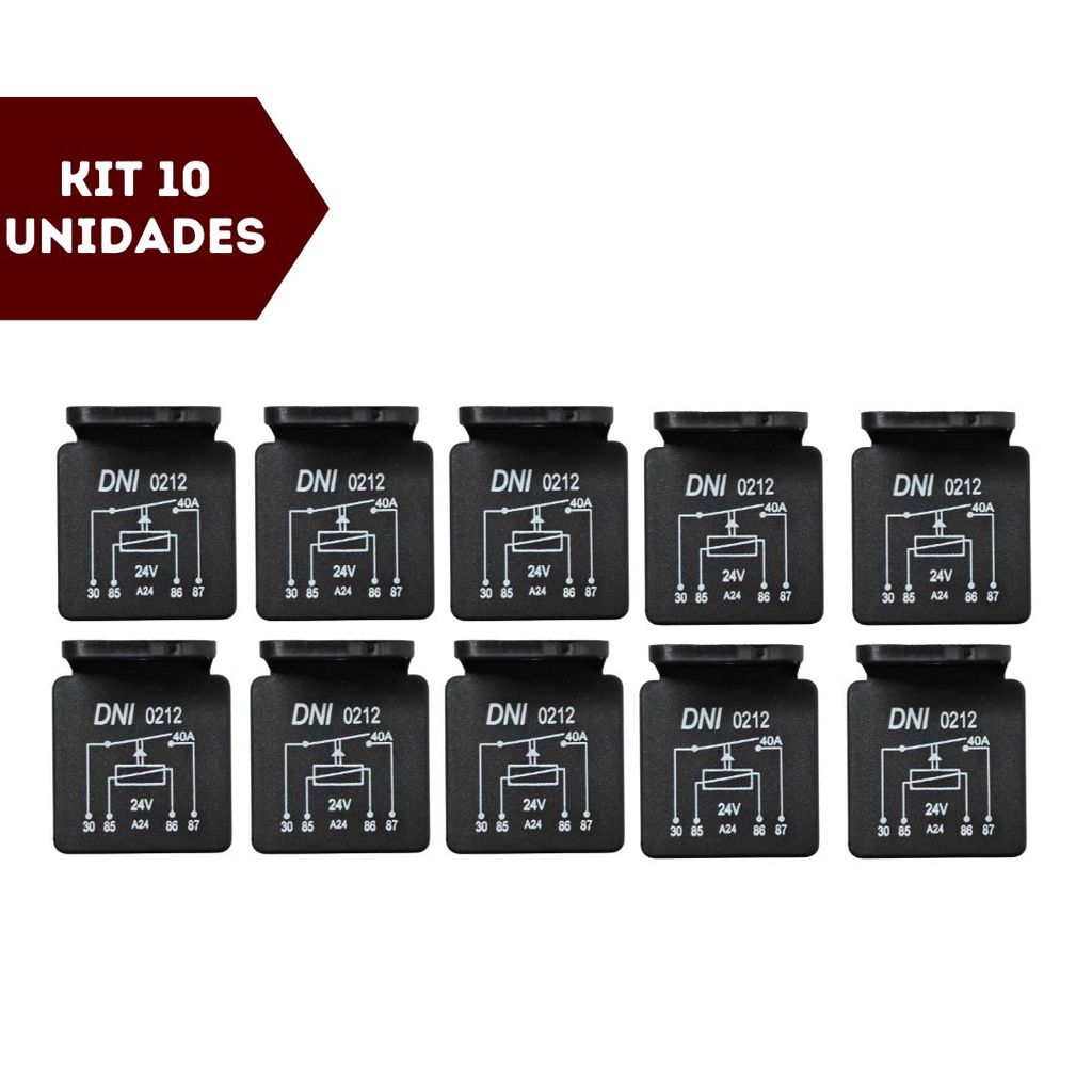 Kit 10 Rele Auxiliar Universal 40a 24v Com Suporte 4 Terminais Uso Geral Caminhões e Onibus DNI 0212