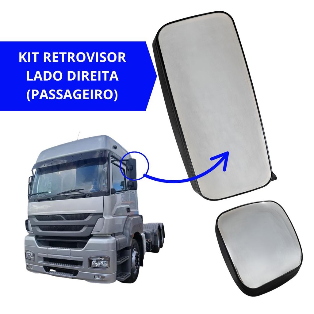 Kit Espelho Retrovisor Para Mercedes Benz Atego Axor Convexo Com Retrovisor Auxiliar Lado Direito