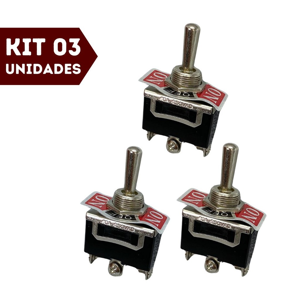 Kit 3 Botão Interruptor Tipo Caça Chave Comutadora Uso Geral Liga Desliga Tic Tac 3 Posições 400w