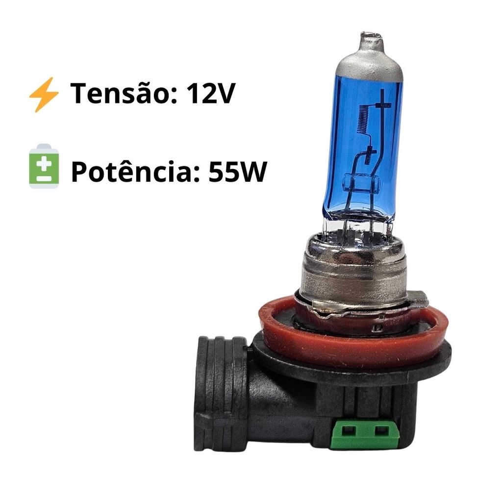 Par Lâmpada Super Branca 12v H11 55w Max Light Azul GL95H11