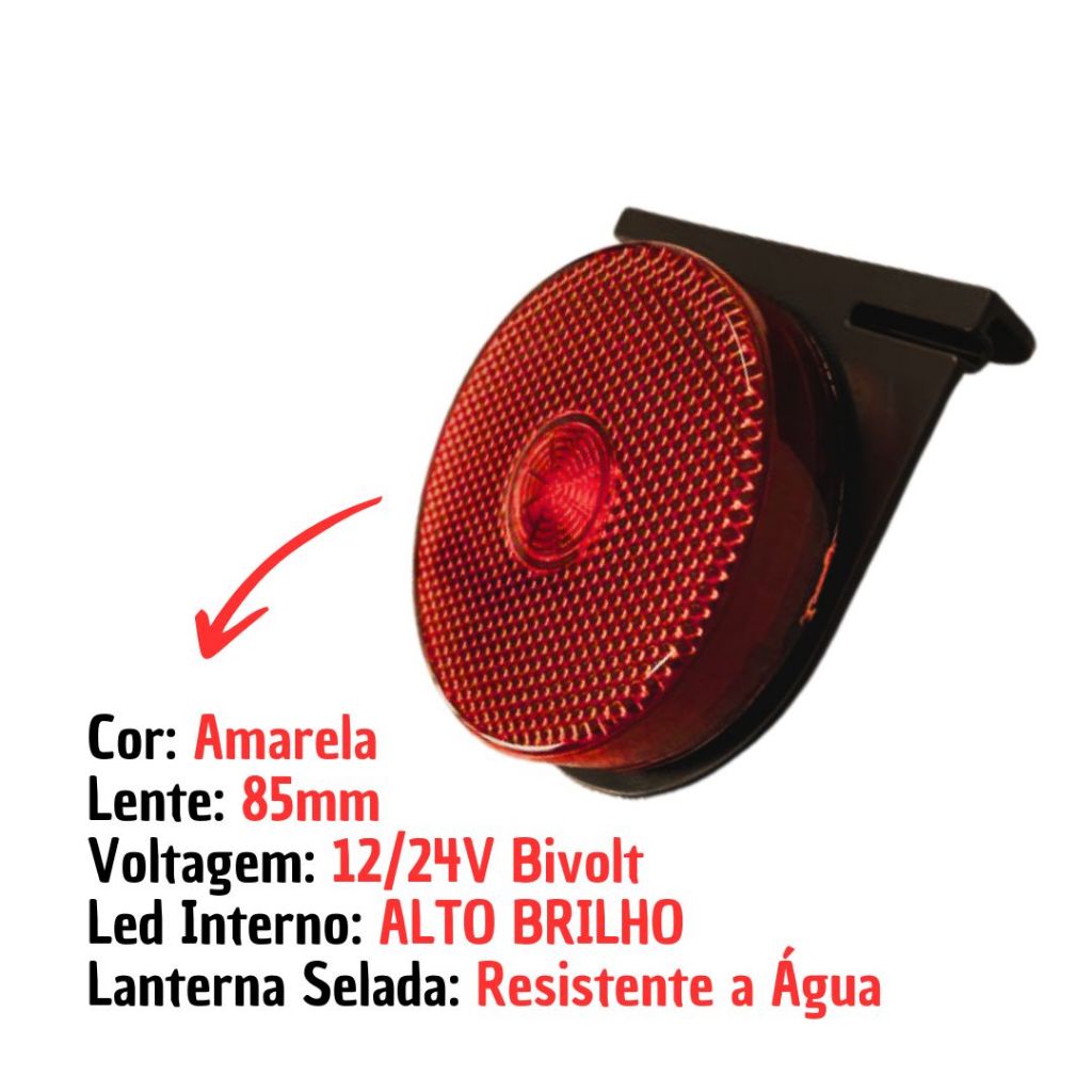 Lanterna Lateral LED Para Caminhão Reboque Randon Guerra Facchini Bivolt Vermelho Com Suporte