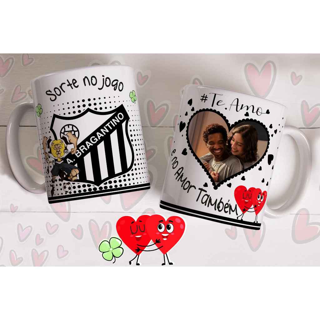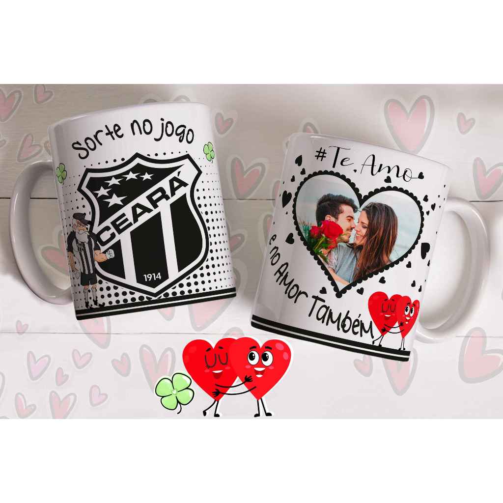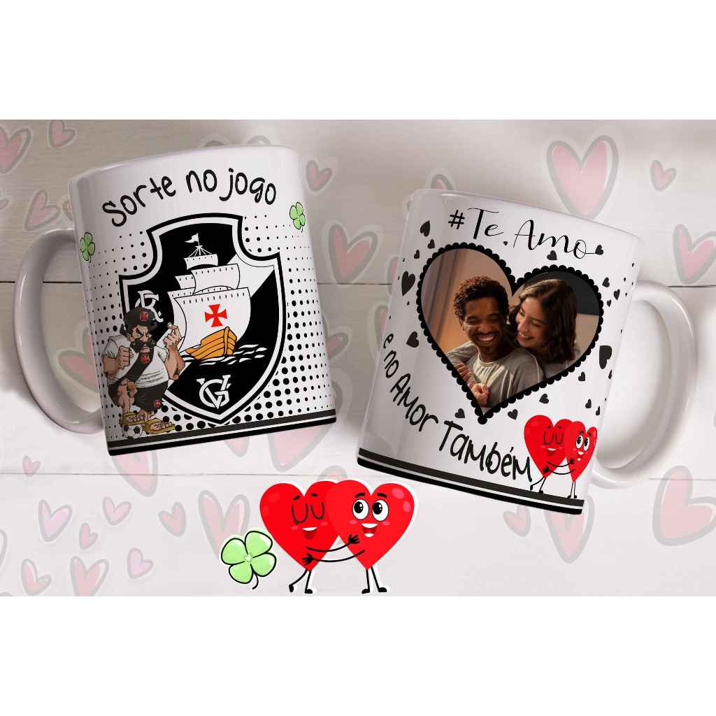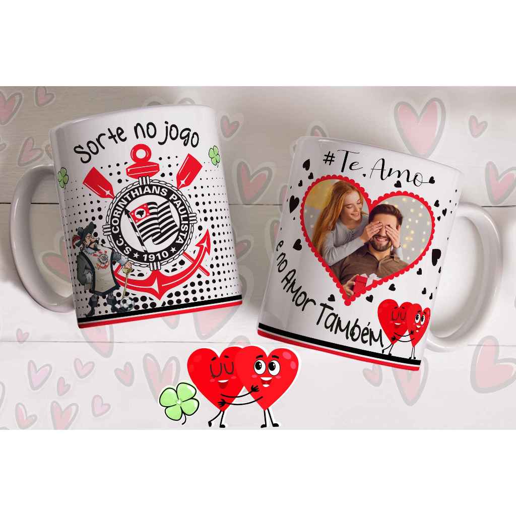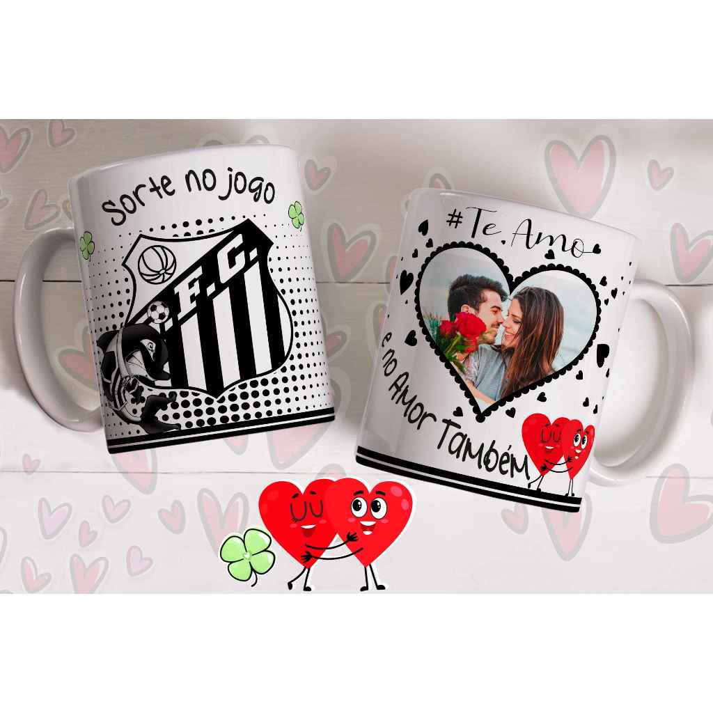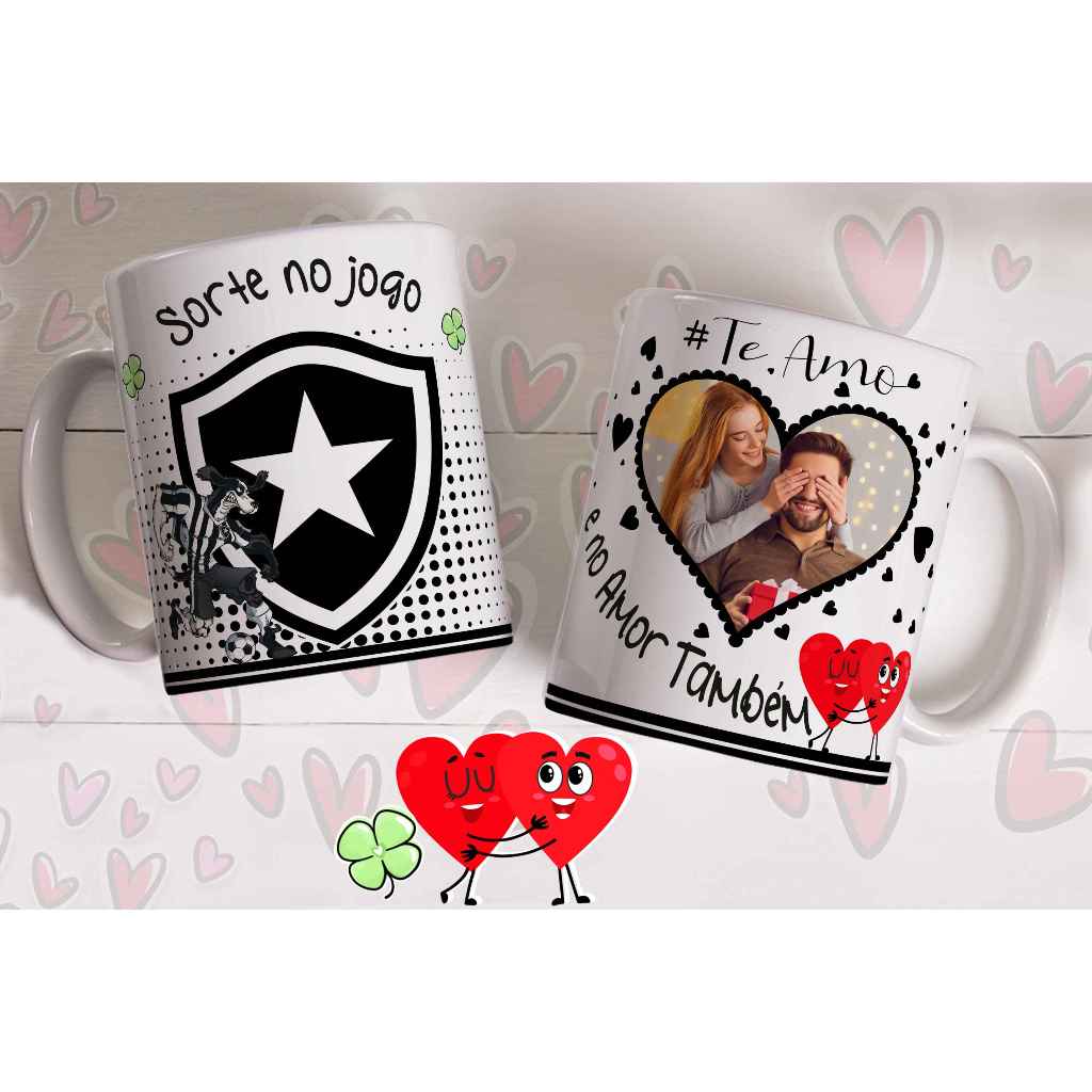 Caneca sorte no jogo e no amor com foto do casal personalizada