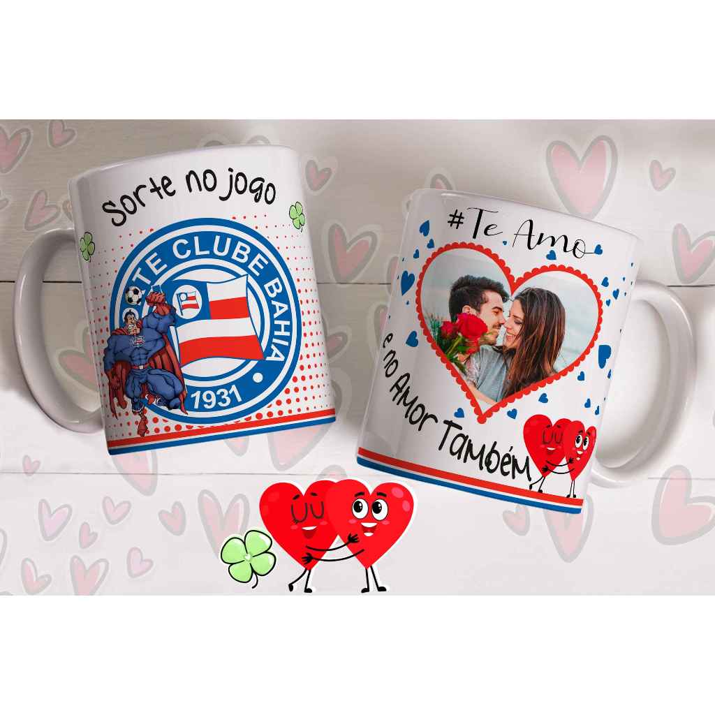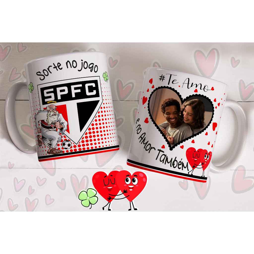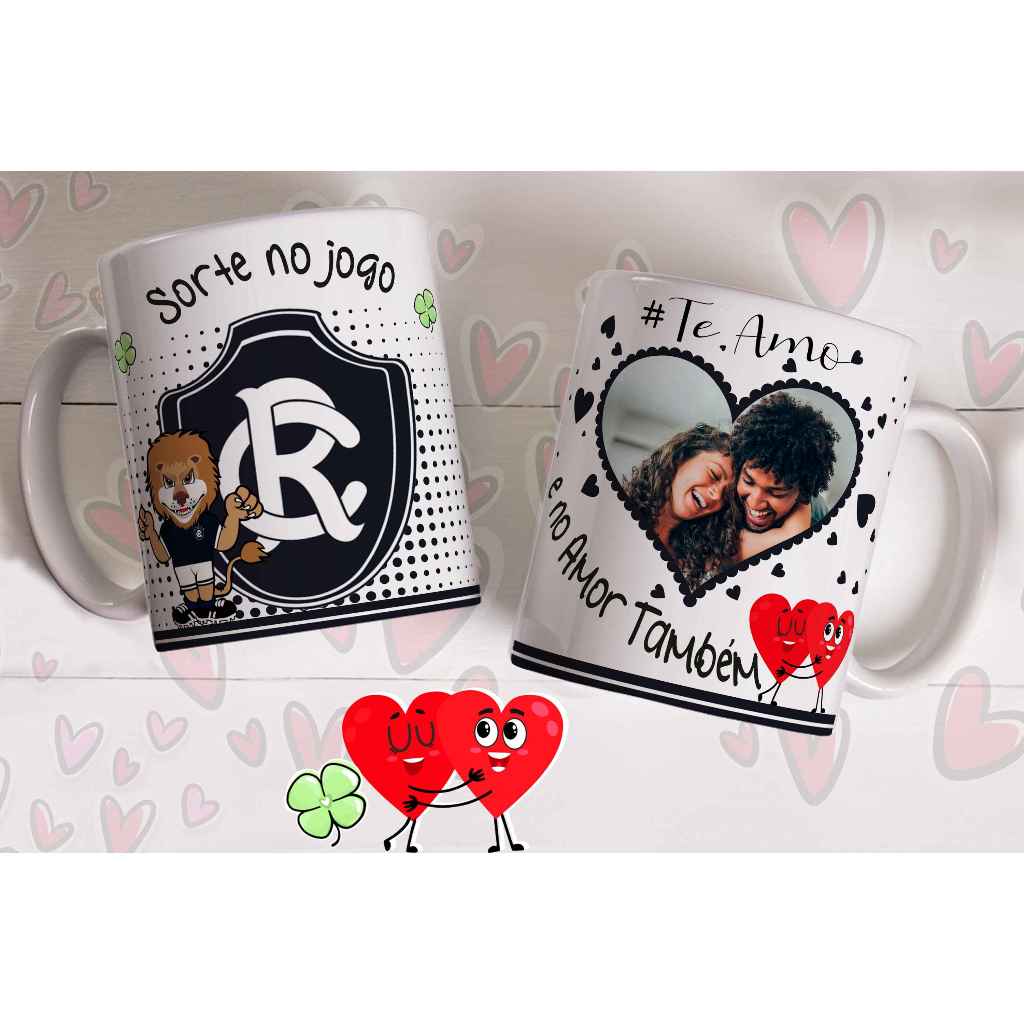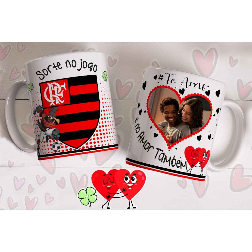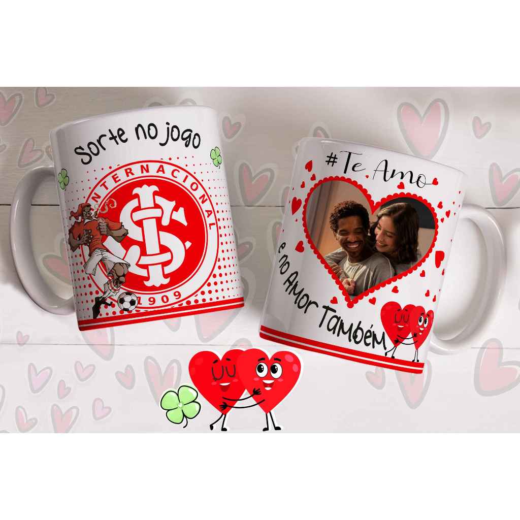 Caneca sorte no jogo e no amor com foto do casal personalizada
