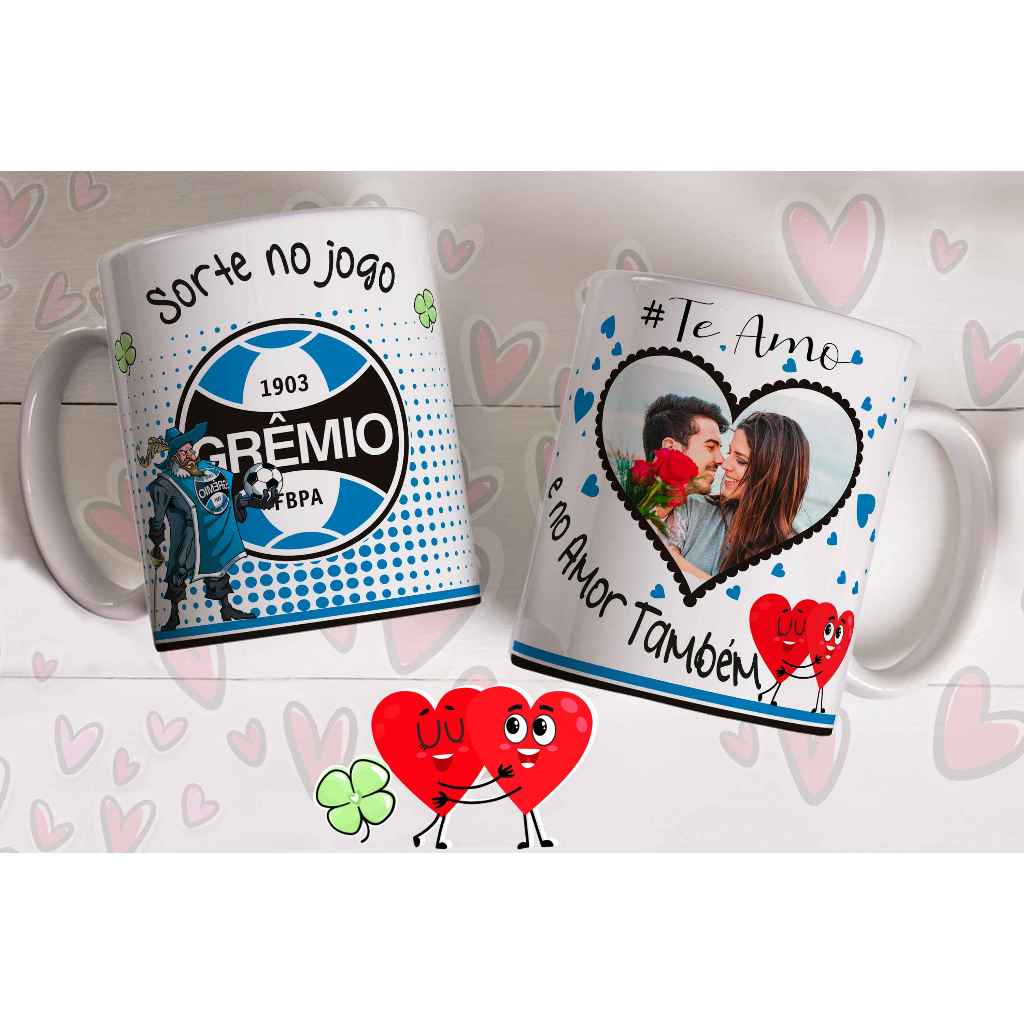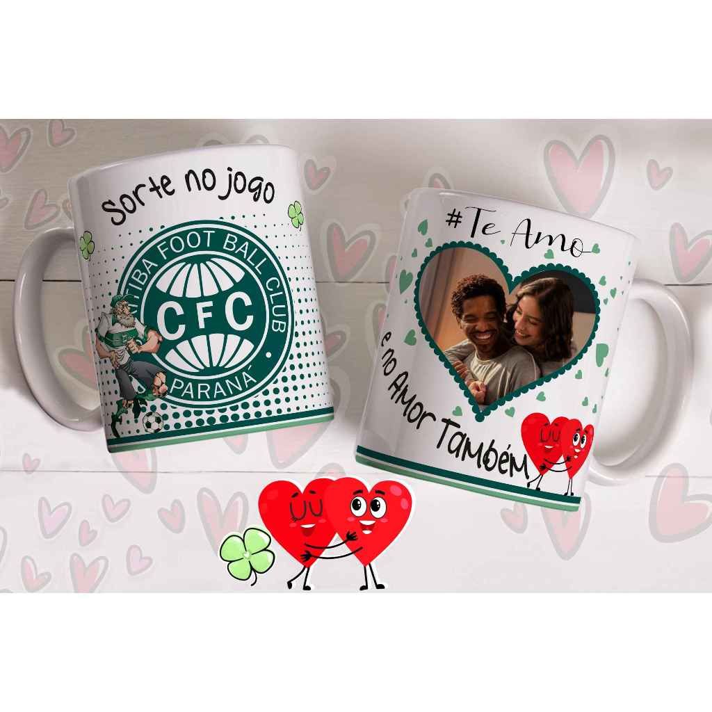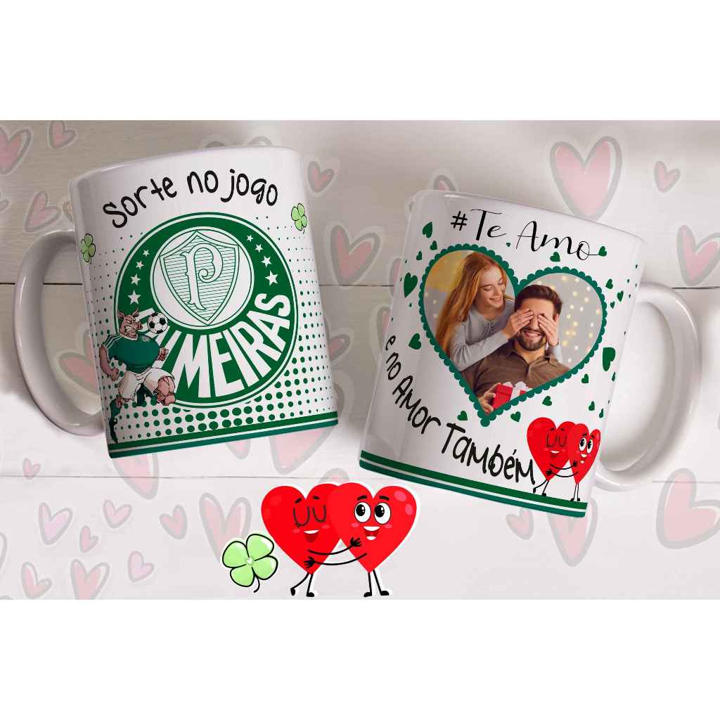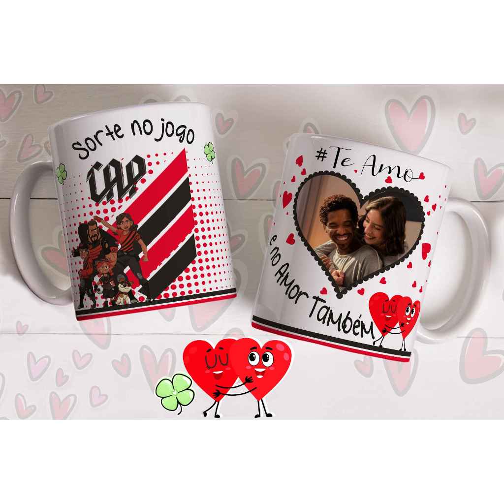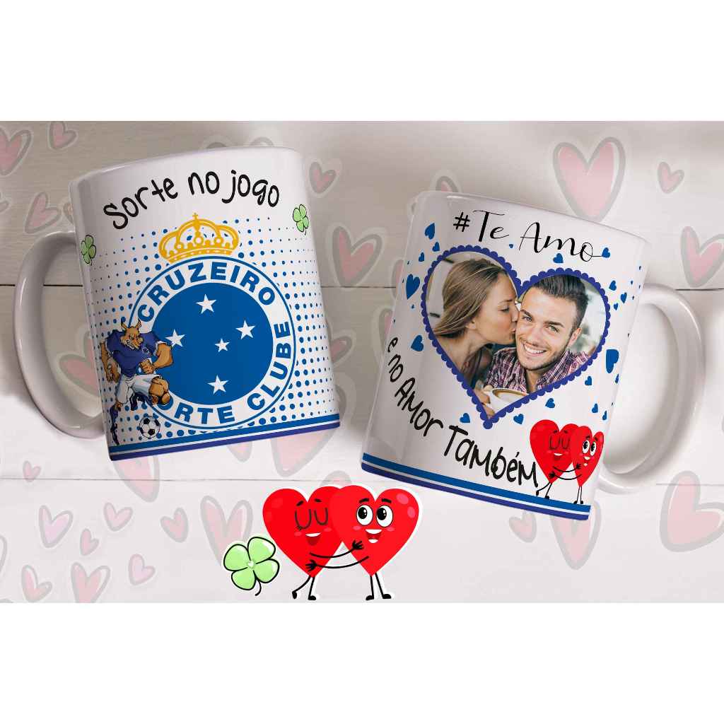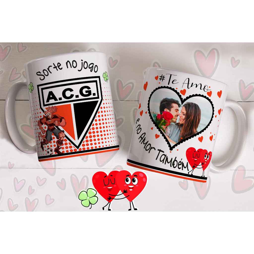 Caneca sorte no jogo e no amor com foto do casal personalizada