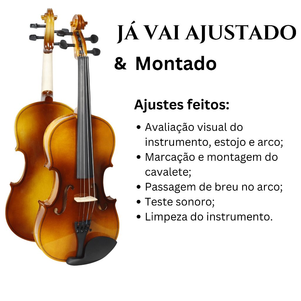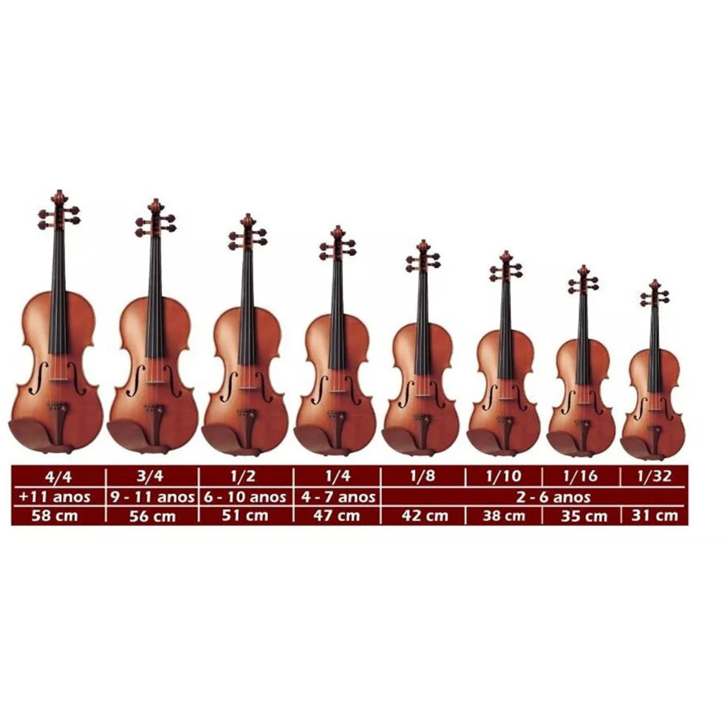 Violino Madeira Ajustado Luthier 4/4 3/4 1/8 1/4 1/2 Com Breu Cavalete Estojo Arco Completo