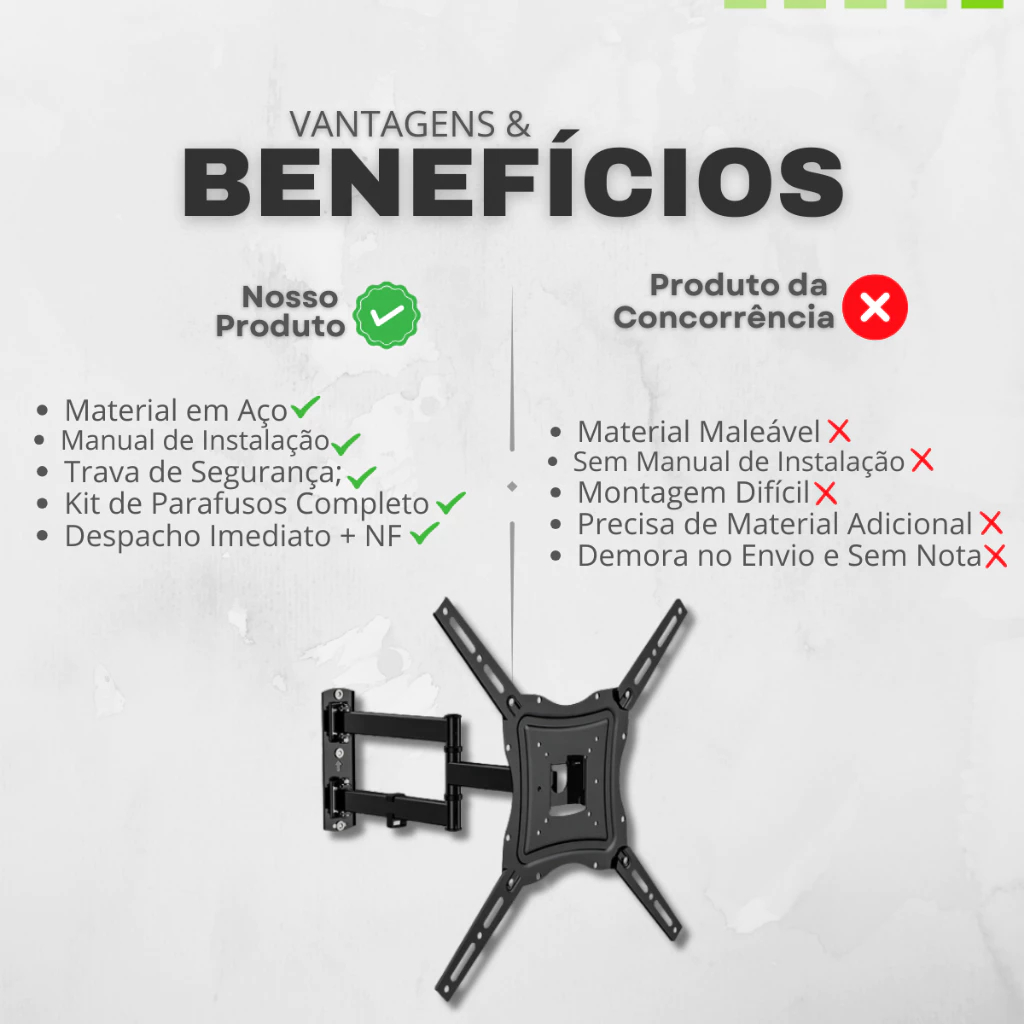 Suporte Tv Tri Articulado Lcd Led Plasma 17 A 60 Pol para parede 32 40 42 43 47 50 52 55 56 polegada