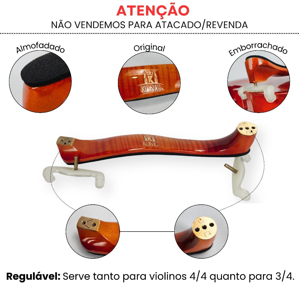 Espaleira para Violino 4/4 e 3/4 Regulável Anatômica Reforçada Confortável Madeira