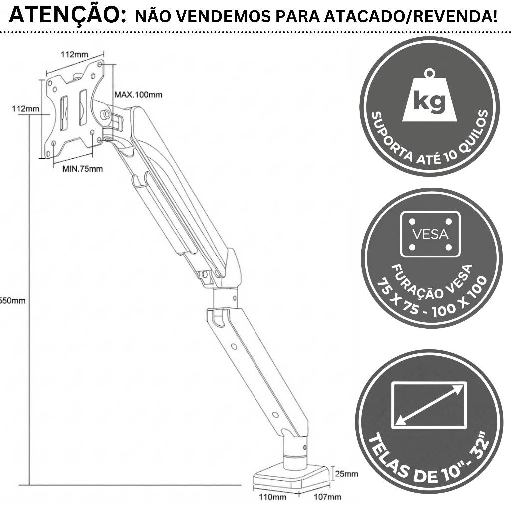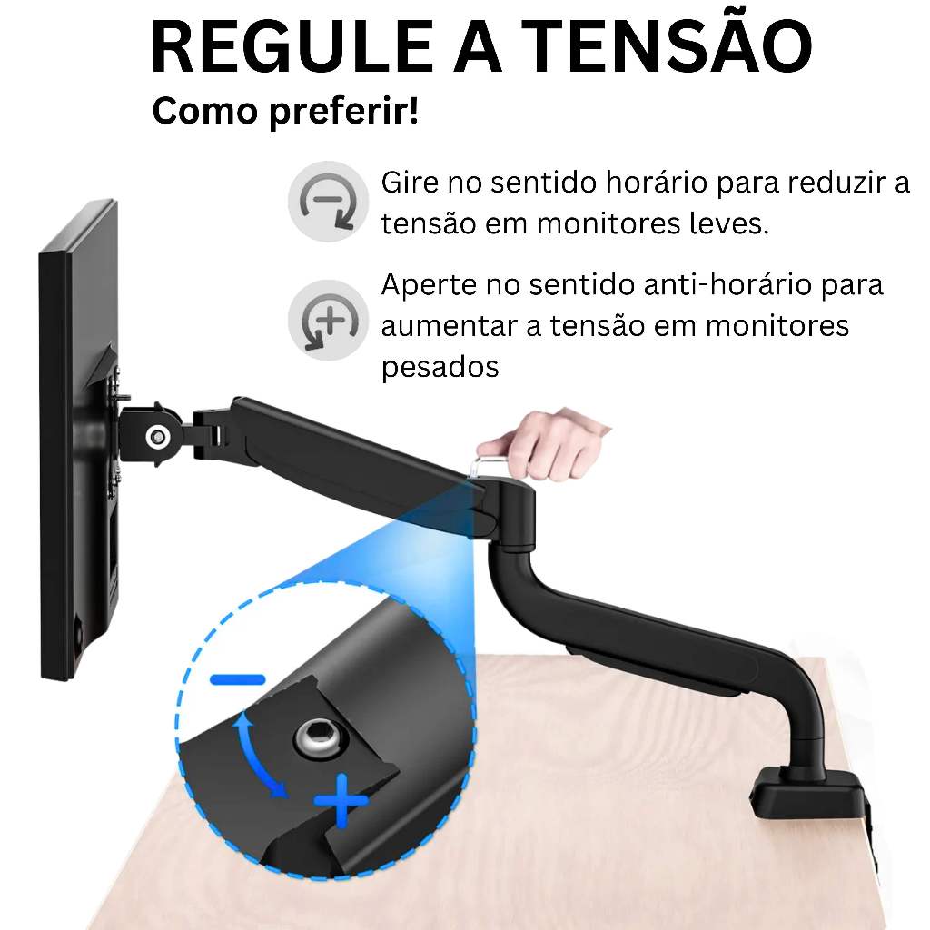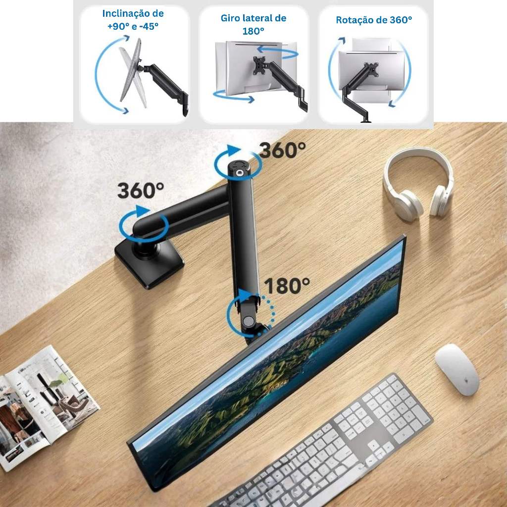 Suporte Para Monitor De Mesa Articulado Para Monitor 10 A 32 Preto Com Pintura Eletrostástica