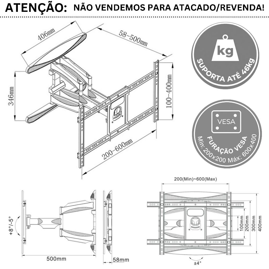 Suporte Articulado Reforçado Para Tv 40 a 90 Polegadas