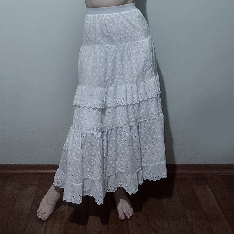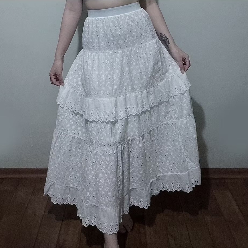 Saia branca comprida de laise com babados, cintura elástica (Vintage/Camponesa)
