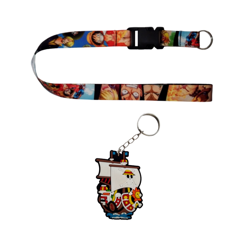 Kit Cordão One Piece com Fecho Engate Rápido + Chaveiro Emborrachado Alto Relevo One Piece