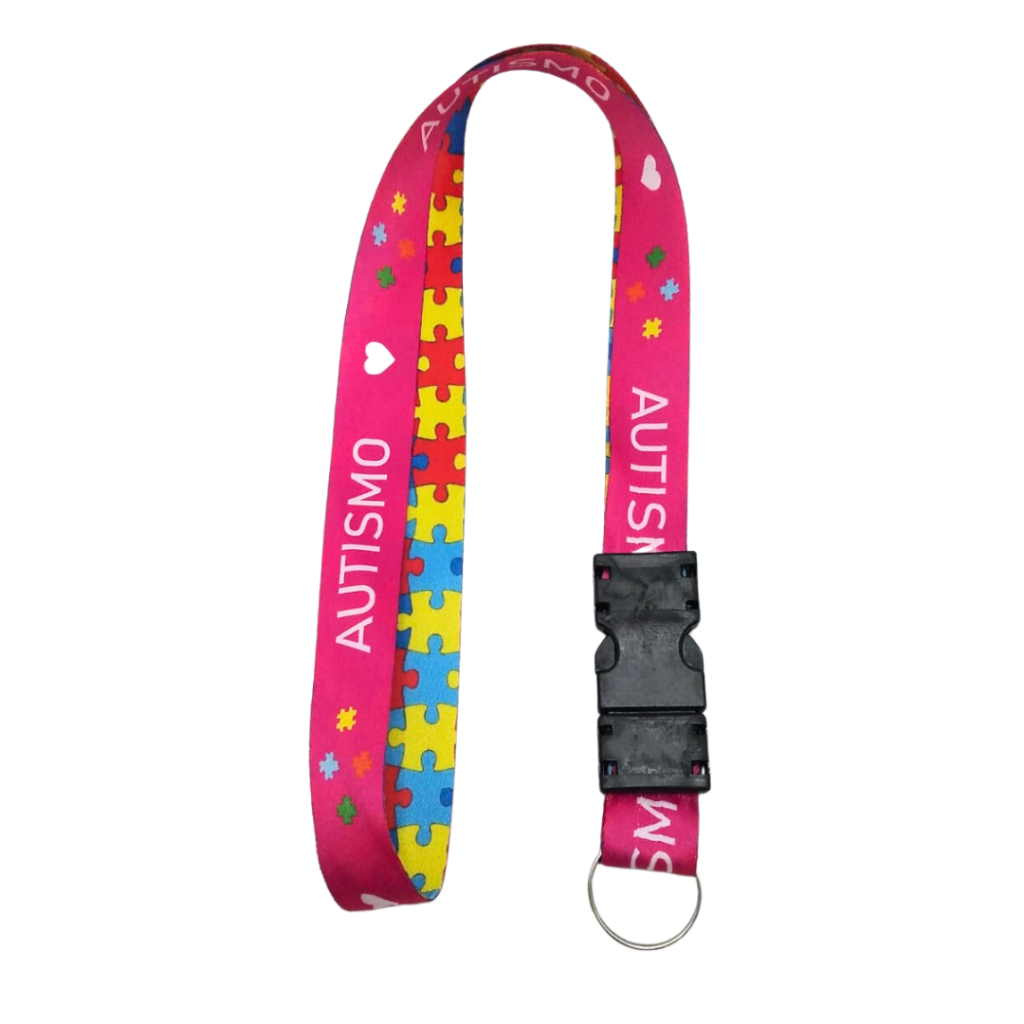 Cordão Pescoço Fecho Engate Rápido Autismo Autista Dupla Face Rosa