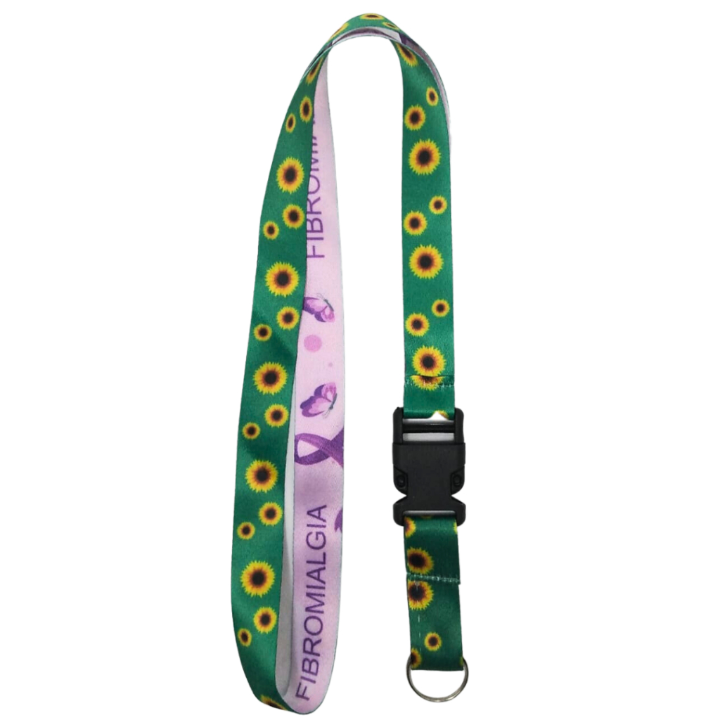Kit Cordão Pescoço Fecho Engate Rápido Fibromialgia + Porta Crachá Roxo