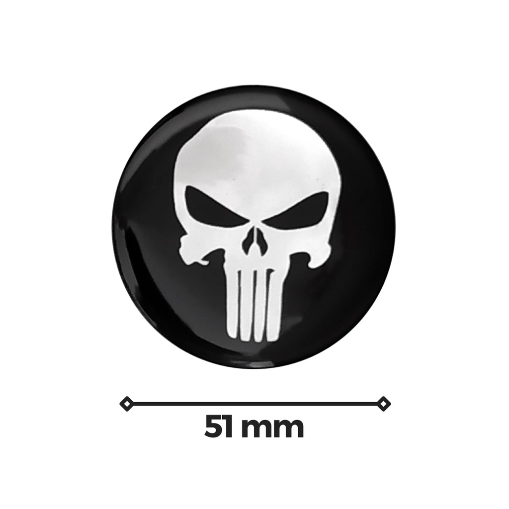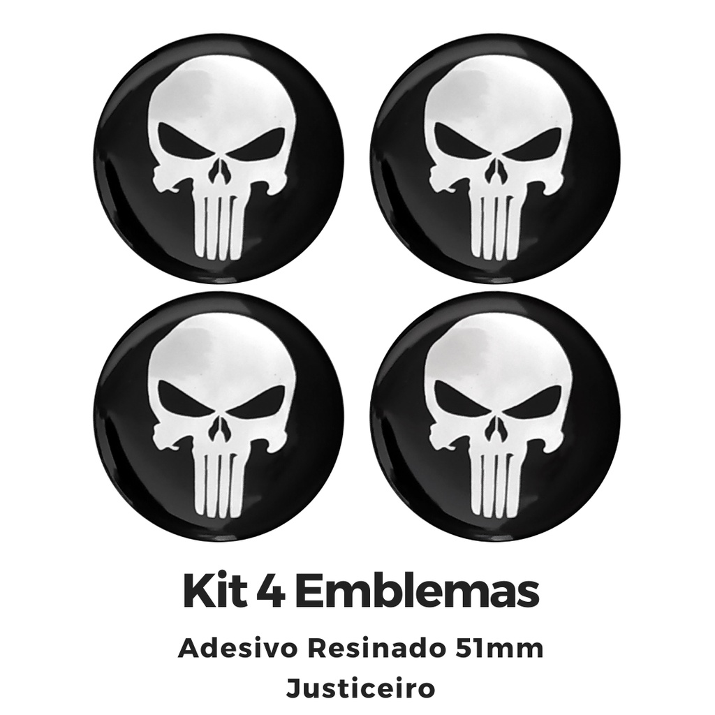 Kit Emblema Adesivo Decorativo Para Calota ou Roda Resinado 4 peças 51mm Justiceiro