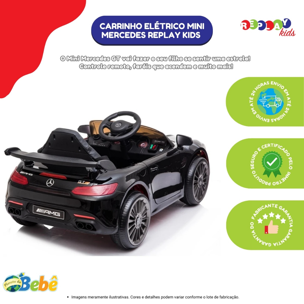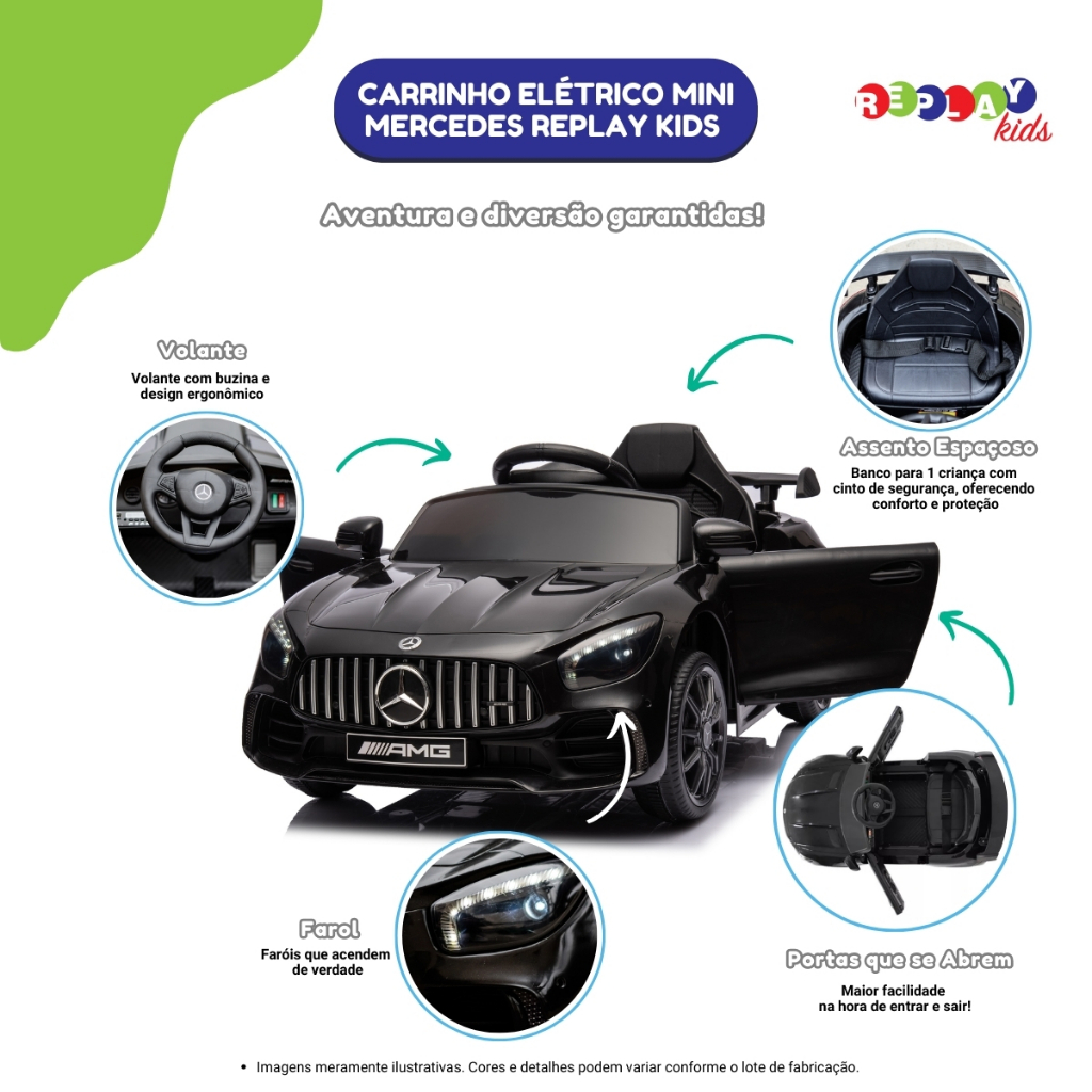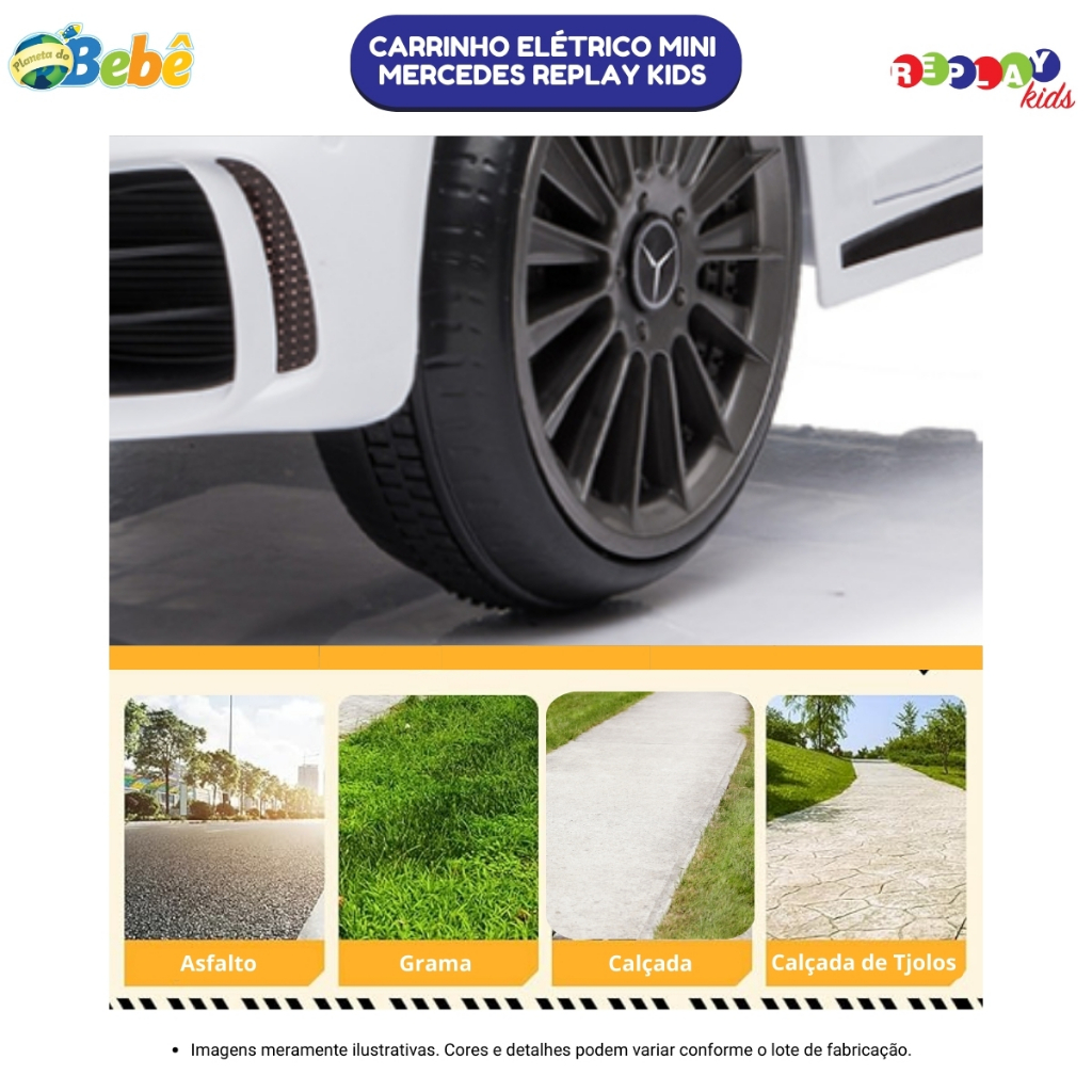 Carrinho Elétrico Infantil Mini Mercedes Branco (BIVOLT) Replay Kids