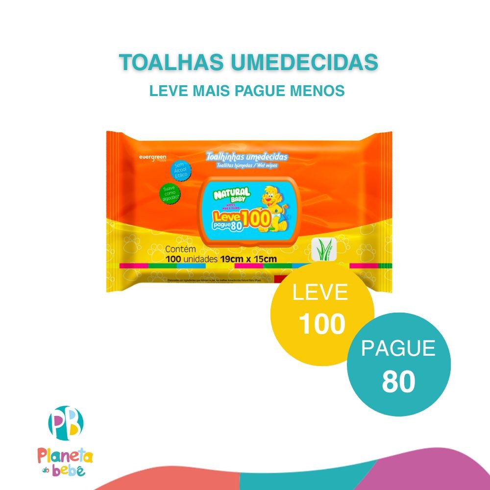 Toalhas Lenços Umedecidos Natural Baby com 100un - Evergreen